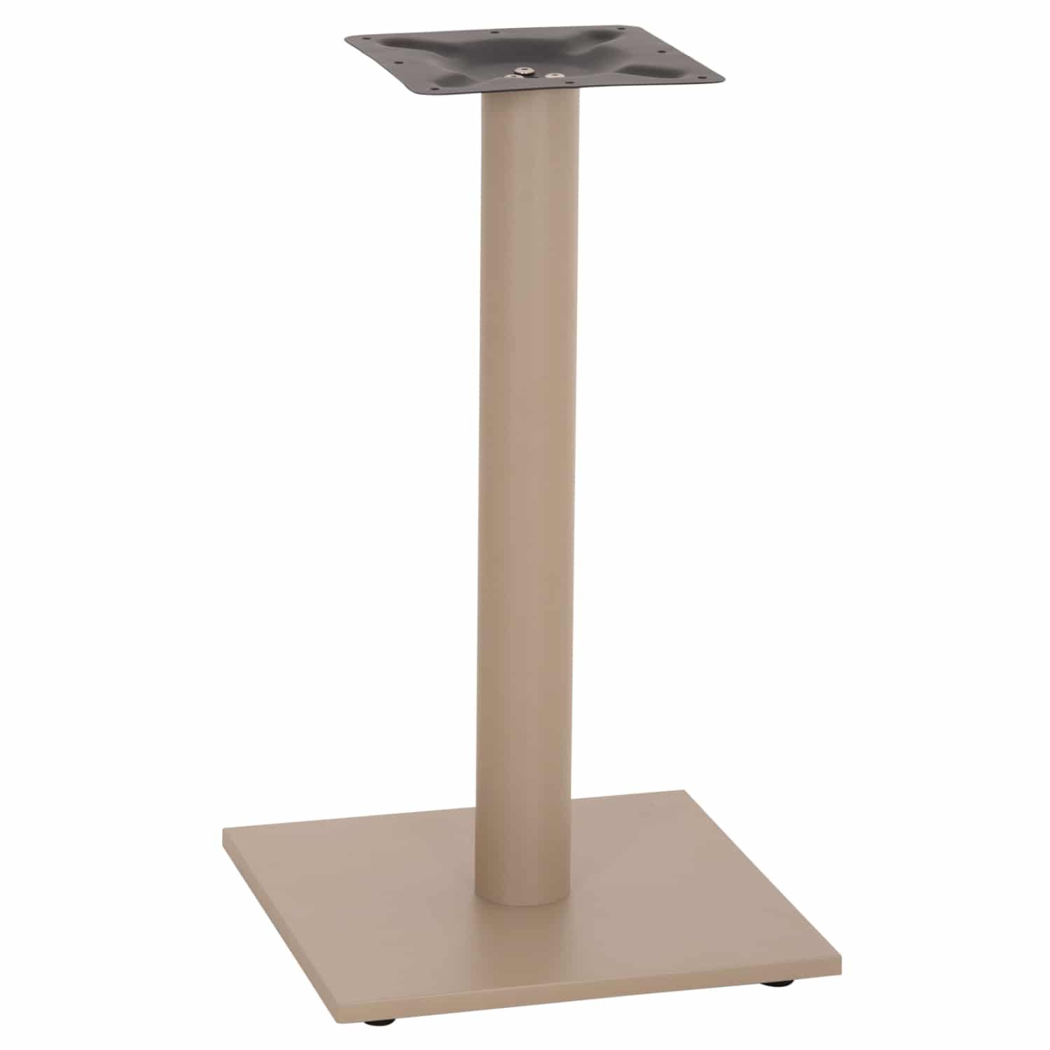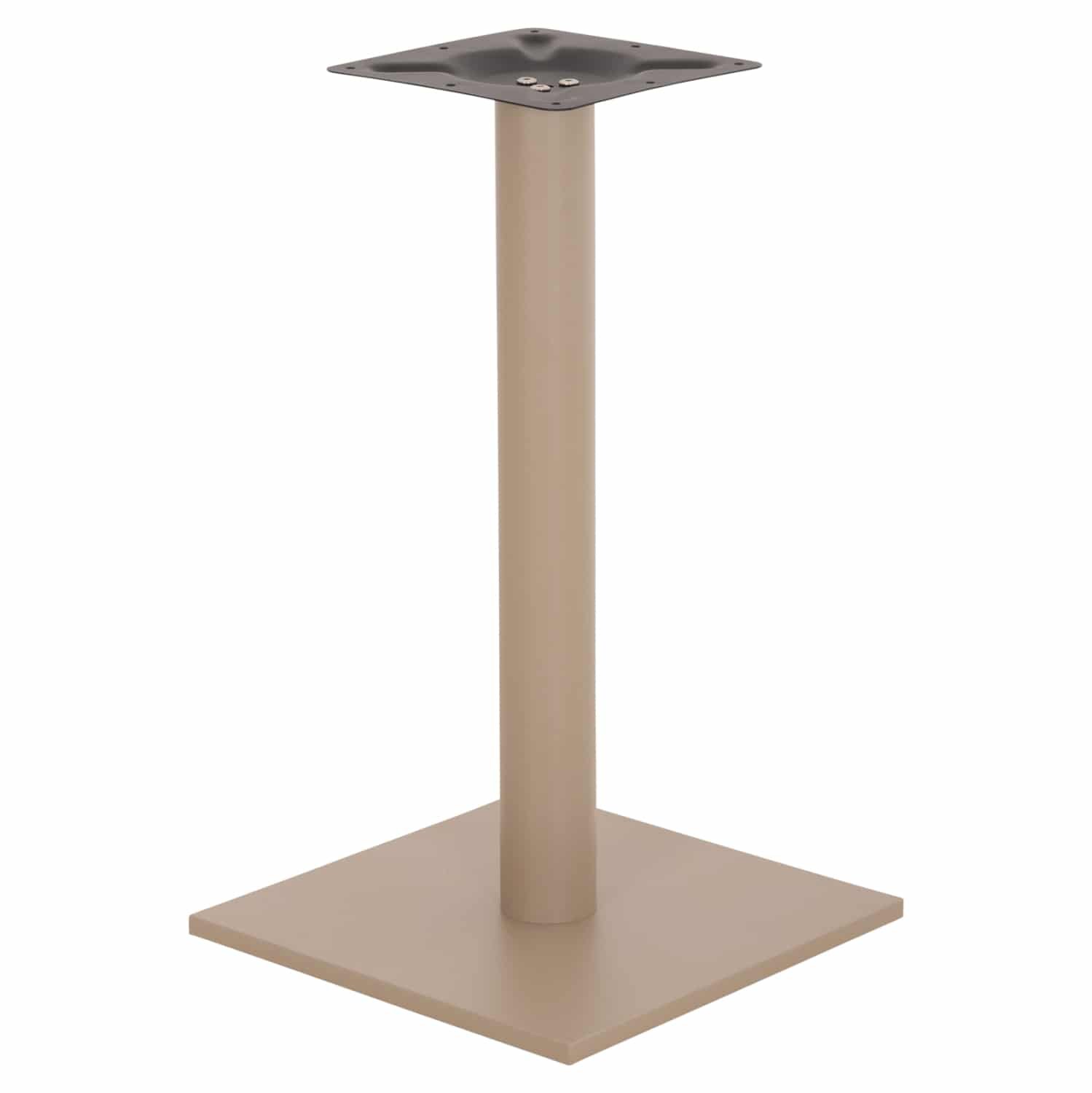 Η ΗΜ421.25 είναι βάση για τραπέζι σε ΚΑΠΟΥΤΣΙΝΟ ΜΑΤ χρώμα. Διαθέτει μεταλλική κολώνα η οποία στηρίζεται σε μια βαριά τετράγωνη μεταλλική βάση με τσιμέντο για χαμηλό κέντρο βάρους. Το καπάκι που θα διαλέξετε στηρίζεται σε μια μεταλλική τετράγωνη επιφάνεια, με αποτέλεσμα να μπορεί να δεχθεί τόσο στρογγυλά καπάκια, όσο και τετράγωνα. Επίσης, στο κάτω μέρος της διαθέτει ρυθμιστές ύψους (ρεγουλατόρους). Ιδανική πρόταση για συνδυασμό με επιφάνειες σχεδόν κάθε είδους, όπως βερσαλίτες, HPL, MDF, κτλ.