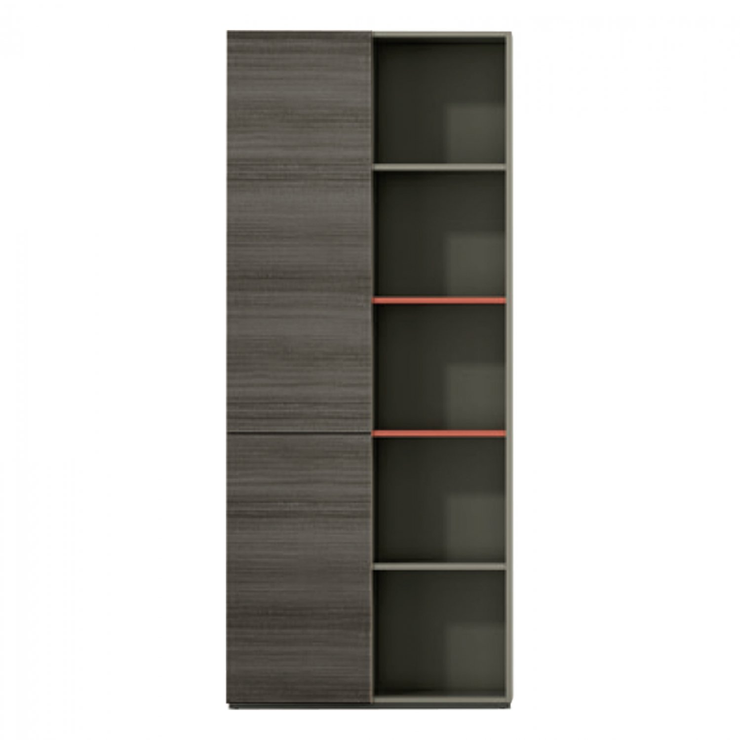 Επαγγελματική βιβλιοθήκη γραφείου από την σειρά Lux Series από μελαμίνη υψηλής ποιότητας, σε μόκα και σταχτί ανάγλυφη απόχρωση και πορτοκαλί λεπτομέρειες.