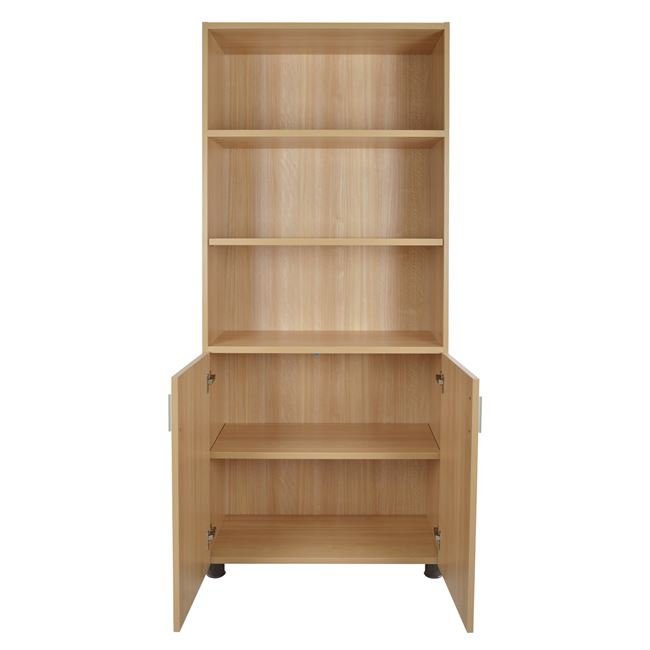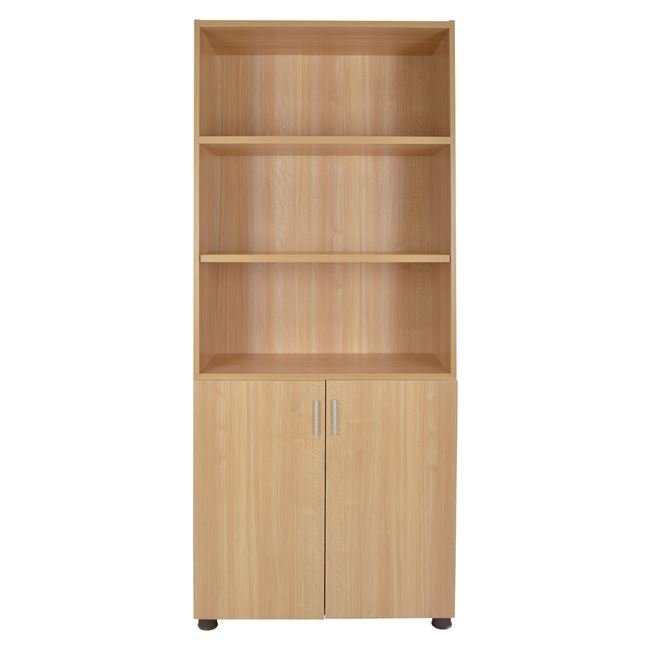 Βιβλιοθήκη γραφείου για επαγγελματική χρήση, κατασκευασμένη από ανθεκτική μελαμίνη σε απόχρωση οξιάς.