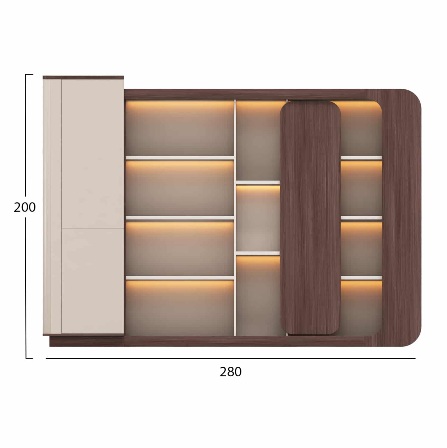 Βιβλιοθήκη Γραφείου PRESIDENT με LED Φωτισμό και Διχρωμία Καρυδί – Μπεζ