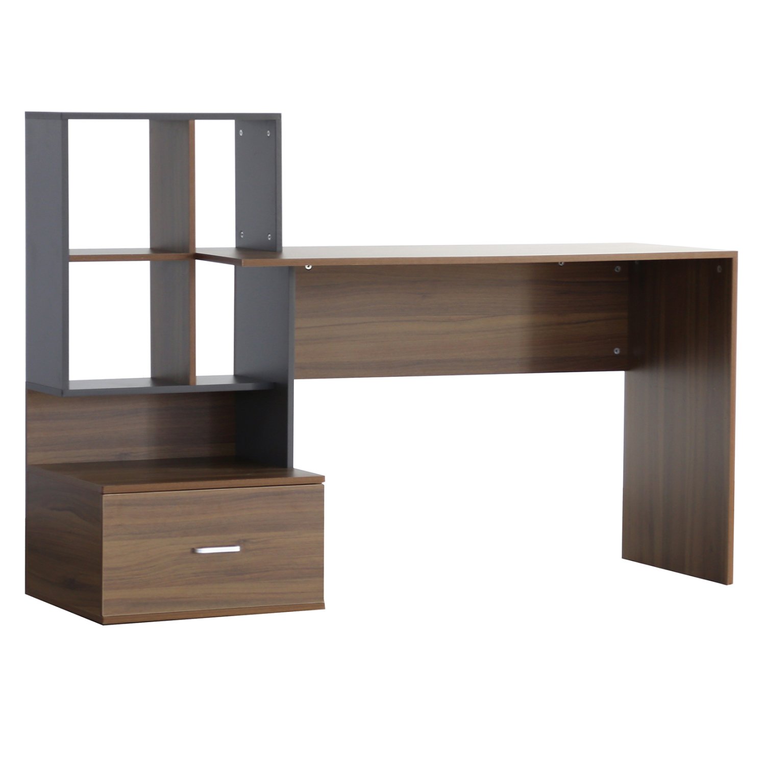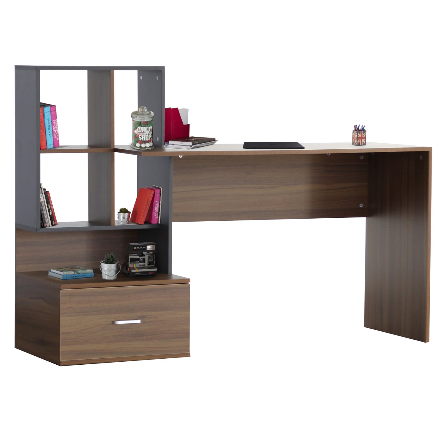 Γραφείο με Ενσωματωμένη Βιβλιοθήκη SYNDYA σε Καρυδί και Γκρι