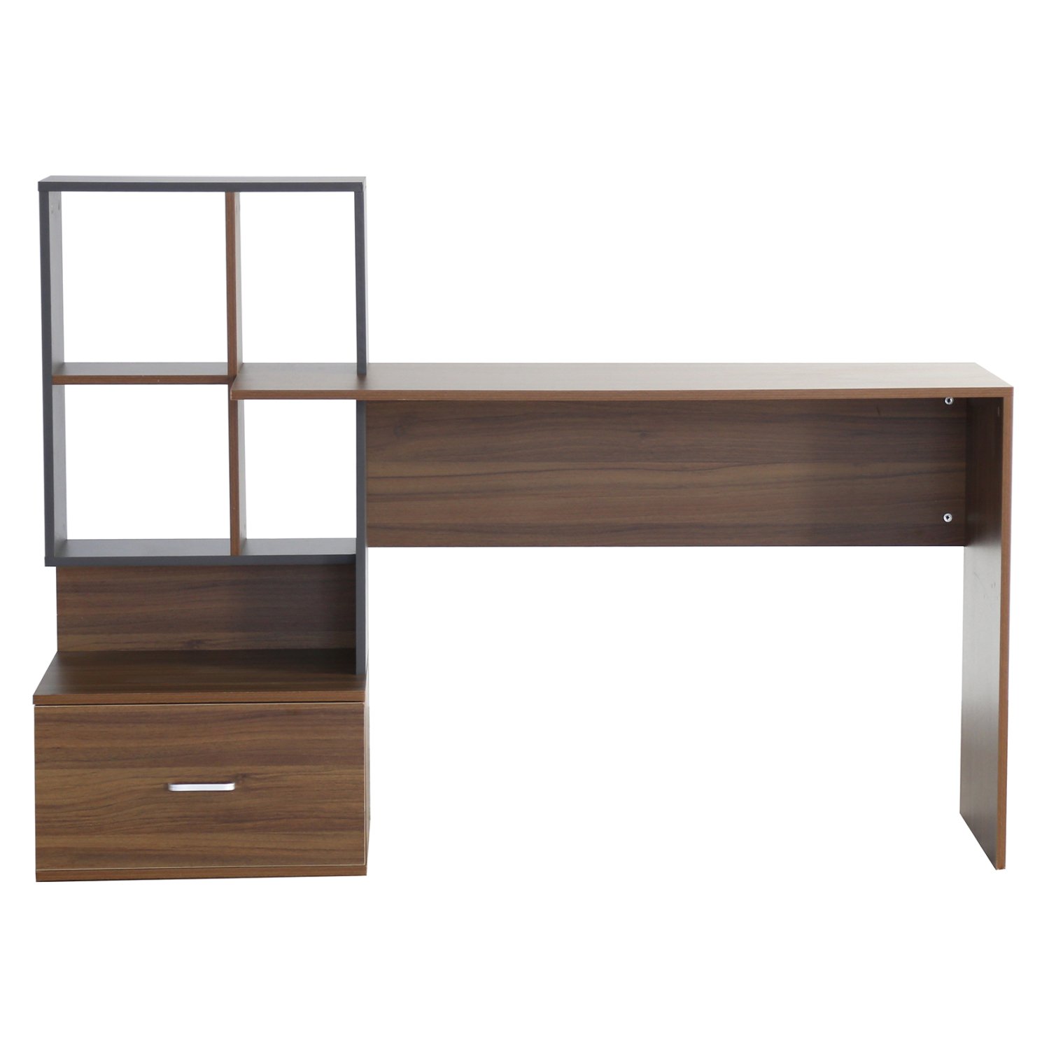Το γραφείο SYNDYA αποτελεί μια πρακτική και κομψή λύση για οικιακό γραφείο, παιδικό ή εφηβικό δωμάτιο. Ο συνδυασμός καρυδί και γκρι μελαμίνης προσδίδει μοντέρνα αισθητική, ενώ η ενσωματωμένη βιβλιοθήκη προσφέρει άνετους χώρους οργάνωσης και αποθήκευσης, ιδανικούς για βιβλία, διακοσμητικά ή είδη γραφείου.