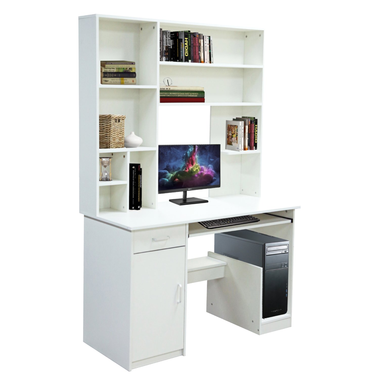 Το ΗΜ2032.03 είναι μια σύνθεση που διαθέτει ένα ντουλάπι στην αριστερή πλευρά, ένα συρτάρι και μια συρταρωτή θέση για πληκτρολόγιο κάτω από την επιφάνεια. Στην δεξιά κάτω πλευρά υπάρχει έτοιμη βάση για ηλεκτρονικό υπολογιστή με ανοιχτό το πίσω μέρος για την εύκολη σύνδεση των καλωδίων. Το επάνω μέρος της σύνθεσης, είναι η βιβλιοθήκη-ραφιέρα με 9 ξεχωριστούς ανοιχτούς χώρους για βιβλία ή οτιδήποτε άλλο θέλετε να έχετε στο γραφείο σας!