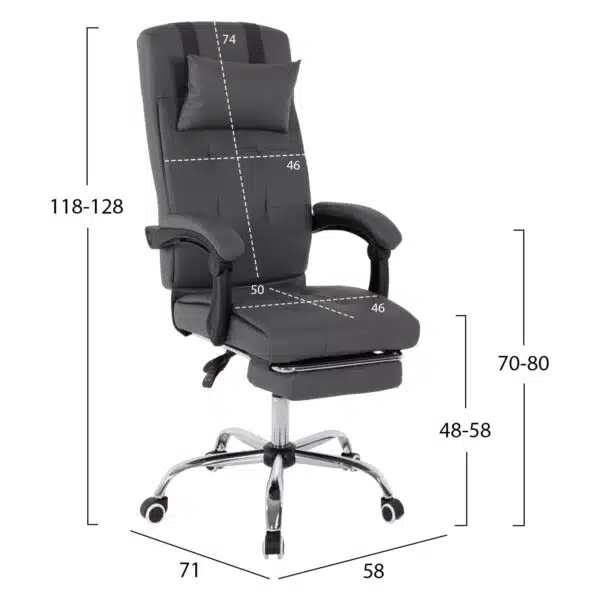 ΠΟΛΥΘΡΟΝΑ ΓΡΑΦΕΙΟΥ ΔΙΕΥΘΥΝΤΙΚΗ ΓΚΡΙ HM1057.20 ΜΕ ΠΤΥΣΣΟΜΕΝΟ ΥΠΟΠΟΔΙΟ 58x71x128Y εκ.