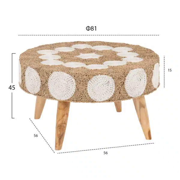 ΤΡΑΠΕΖΙ ΣΑΛΟΝΙΟΥ HM7825 ΞΥΛΟ ΤΕΑΚ ΚΑΙ SEAGRASS ΣΕ ΦΥΣΙΚΟ & ΛΕΥΚΟ Φ81×45Υεκ.