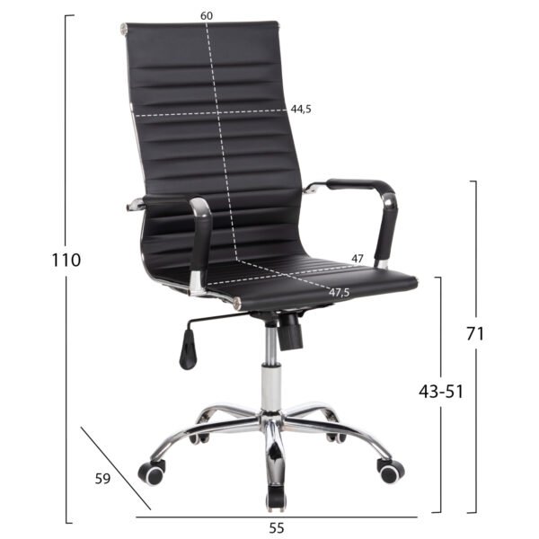 ΚΑΡΕΚΛΑ ΓΡΑΦΕΙΟΥ HM1059.31 ΜΑΥΡΟ PU BOSS ΔΙΕΥΘΥΝΤΟΥ ΠΟΔΙ ΧΡΩΜΙΟΥ 54x57x110Υεκ.