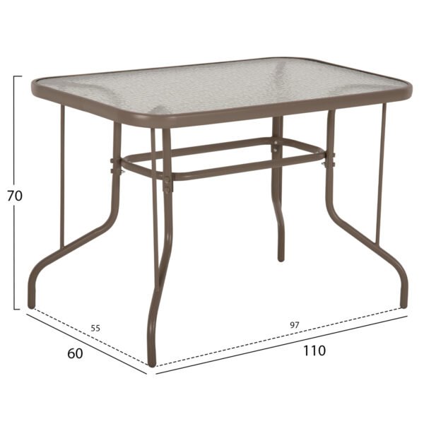ΤΡΑΠΕΖΙ ADAM HM5020.04 ΜΕΤΑΛΛΙΚΟ ΣΑΜΠΑΝΙ ΜΕ ΓΥΑΛΙΝΗ ΕΠΙΦΑΝΕΙΑ 110Χ60Χ71Υεκ.