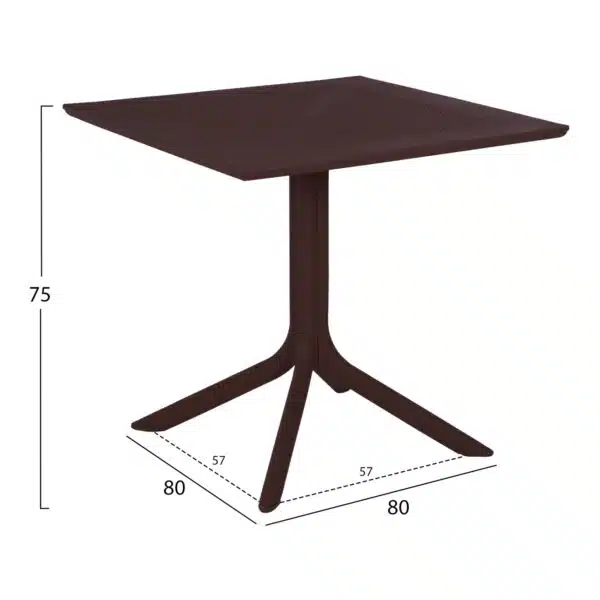 ΤΡΑΠΕΖΙ ΠΟΛΥΠΡΟΠΥΛΕΝΙΟΥ ΤΕΤΡΑΓΩΝΟ LUNAR HM5930.13 ΚΑΦΕ 80x80x75Yεκ.