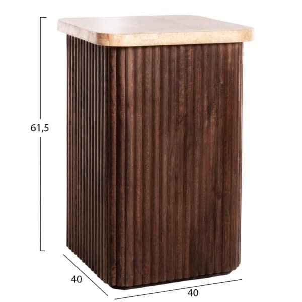 ΒΟΗΘΗΤΙΚΟ ΤΡΑΠΕΖΑΚΙ ΤΕΤΡΑΓΩΝΟ GLADYS HM9713 ΜΑΣΙΦ MANGO-ΤΡΑΒΕΡΤΙΝΑ 40x40x60Υεκ.