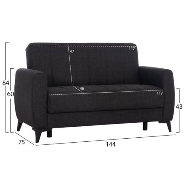 ΚΑΝΑΠΕΣ ΚΡΕΒΑΤΙ ΜΕ ΑΠΟΘ.ΧΩΡΟ ΔΙΘΕΣΙΟΣ NIKKO HM3293.01 ΓΚΡΙ ΥΦΑΣΜΑ 144x75x84Υεκ.