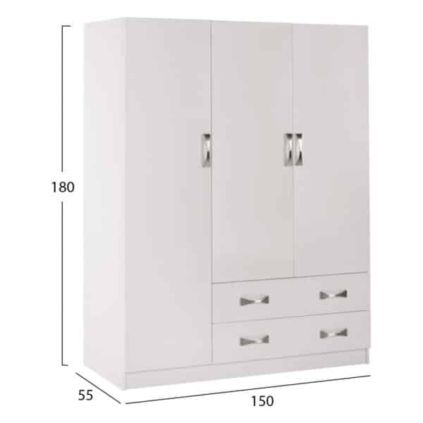 ΝΤΟΥΛΑΠΑ 3ΦΥΛΛΗ CARLY HM384.05 ΜΕ ΔΥΟ ΣΥΡΤΑΡΙΑ ΛΕΥΚΗ 150X55Χ180Υεκ.