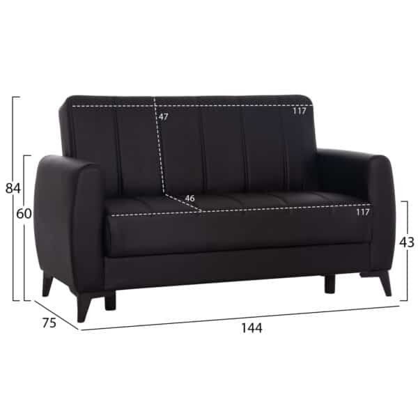 ΚΑΝΑΠΕΣ 2ΘΕΣΙΟΣ KIANA HM3122.21 ΜΕ ΜΑΥΡΟ PU 130x75x71 εκ.