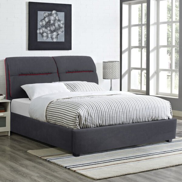 ΚΡΕΒΑΤΙ KENDRA ΔΙΠΛΟ ΓΙΑ ΣΤΡΩΜΑ 150×200 εκ. ΜΕ ΥΦΑΣΜΑ ΓΚΡΙ ΚΑΙ ΚΟΚΚΙΝΗ ΡΙΓΑ HM562