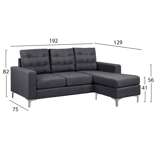 ΚΑΝΑΠΕΣ ΓΩΝΙΑ ΑΝΑΣΤΡΕΨΙΜΗ SANTINO HM3152.01 ΜΕ ΓΚΡΙ ΥΦΑΣΜΑ 192X129X82Y εκ.