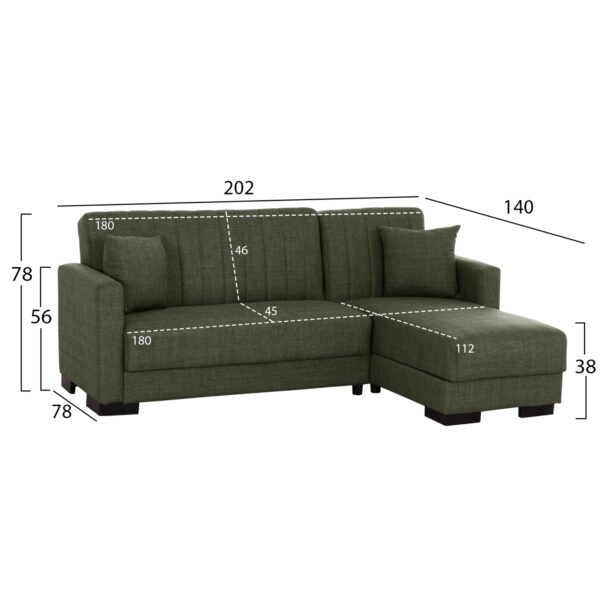 ΚΑΝΑΠΕΣ ΚΡΕΒΑΤΙ GHUFRAN ΓΩΝΙΑ ΑΝΑΣΤΡΕΨΙΜΗ DARK OLIVE ΜΕ ΑΠΟΘΗΚΕΤΙΚΟ ΧΩΡΟ HM3244.05 202x140x78Yεκ.