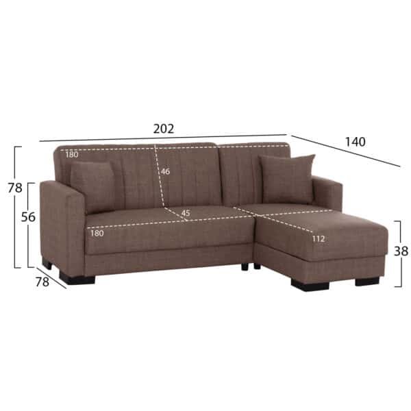 ΚΑΝΑΠΕΣ ΚΡΕΒΑΤΙ GHUFRAN ΓΩΝΙΑ ΑΝΑΣΤΡΕΨΙΜΗ ΜΠΕΖ HM3244.04 ΜΕ ΑΠΟΘΗΚΕΤΙΚΟ ΧΩΡΟ 200x133x77Yεκ.