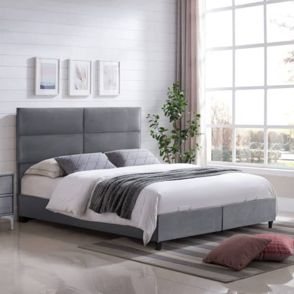 ΚΡΕΒΑΤΙ ΜΕ ΣΤΡΩΜΑ ΔΙΠΛΟ MILO HM21163 ΓΚΡΙ ΒΕΛΟΥΔΟ & ΑΠΟΘ.ΧΩΡΟΣ-ΓΙΑ 160×200εκ.