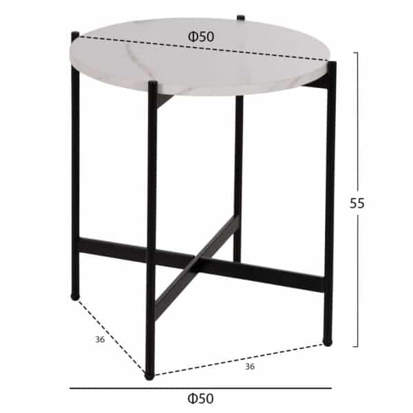 ΒΟΗΘΗΤΙΚΟ ΤΡΑΠΕΖΙ HM9589.05 MDF ΛΕΥΚΟ ΜΑΡΜΑΡΟ-ΜΑΥΡΗ ΜΕΤΑΛΛΙΚΗ ΒΑΣΗ Φ50×55Υεκ.