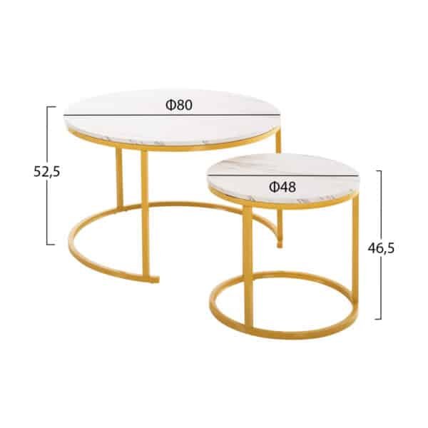 ΤΡΑΠΕΖΙ ΣΑΛΟΝΙΟΥ ΣΕΤ 2ΤΜΧ MDF ΕΦΕ ΛΕΥΚΟ ΜΑΡΜΑΡΟ ΜΕ ΧΡΥΣΑ ΠΟΔΙΑ Φ80 k Φ48εκ.HM8763.11