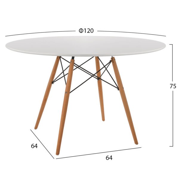 ΤΡΑΠΕΖΙ MINIMAL ΣΤΡΟΓΓΥΛΟ HM8454.01 MDF ΣΕ ΛΕΥΚΟ-ΠΟΔΙΑ ΟΞΙΑΣ ΣΕ ΦΥΣΙΚΟ Φ120Χ75Υεκ.
