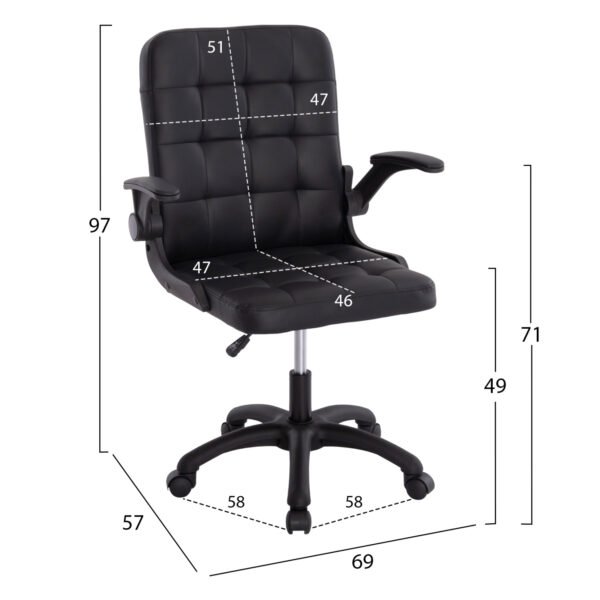 ΚΑΡΕΚΛΑ ΓΡΑΦΕΙΟΥ PORTIMA HM1197.01 ΜΑΥΡΟ PVC-NYLON ΣΚΕΛΕΤΟΣ & ΒΑΣΗ 69x57x97Υεκ.