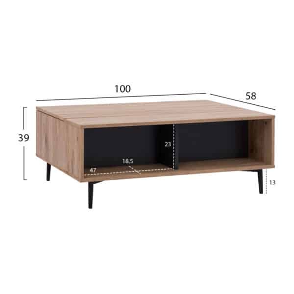 ΤΡΑΠΕΖΙ ΣΑΛΟΝΙΟΥ ΜΕΛΑΜΙΝΗΣ ME ΑΠΟΘΗΚΕΥΤΙΚΟ MARGARIT 100x58x39-53Yεκ.HM8677.11