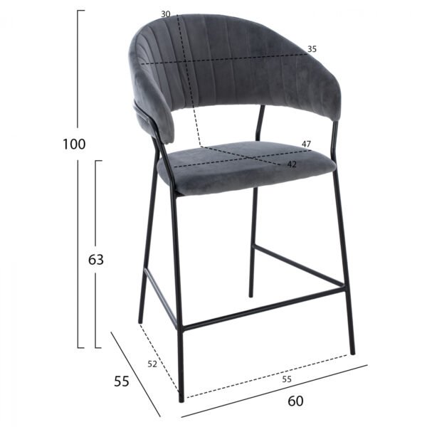 ΣΚΑΜΠΟ ΜΕΣΑΙΟΥ ΥΨΟΥΣ HM8734.01 THEODORE ΒΕΛΟΥΔΟ ΓΚΡΙ ΜΕ ΜΑΥΡΟ ΣΚΕΛΕΤΟ 60x55x100Y εκ.