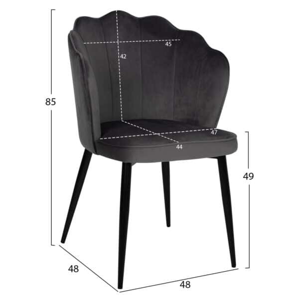ΚΑΡΕΚΛΑ AVIE ΒΕΛΟΥΔΟ ΓΚΡΙ ΜΕ ΜΕΤΑΛΛΙΚΟ ΣΚΕΛΕΤΟ HM8737.01 48x48x85Y εκ.