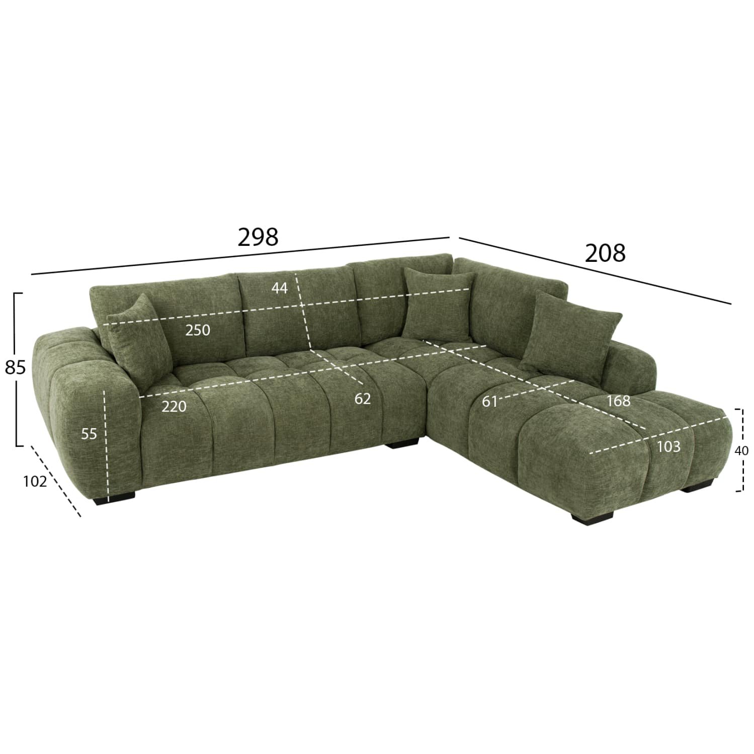 ΚΑΝΑΠΕΣ ΓΩΝΙΑ (ΔΕΞΙΑ) COVEN HM3266.14R ΠΡΑΣΙΝΟ ΥΦΑΣΜΑ 298×102-208×85Υεκ.