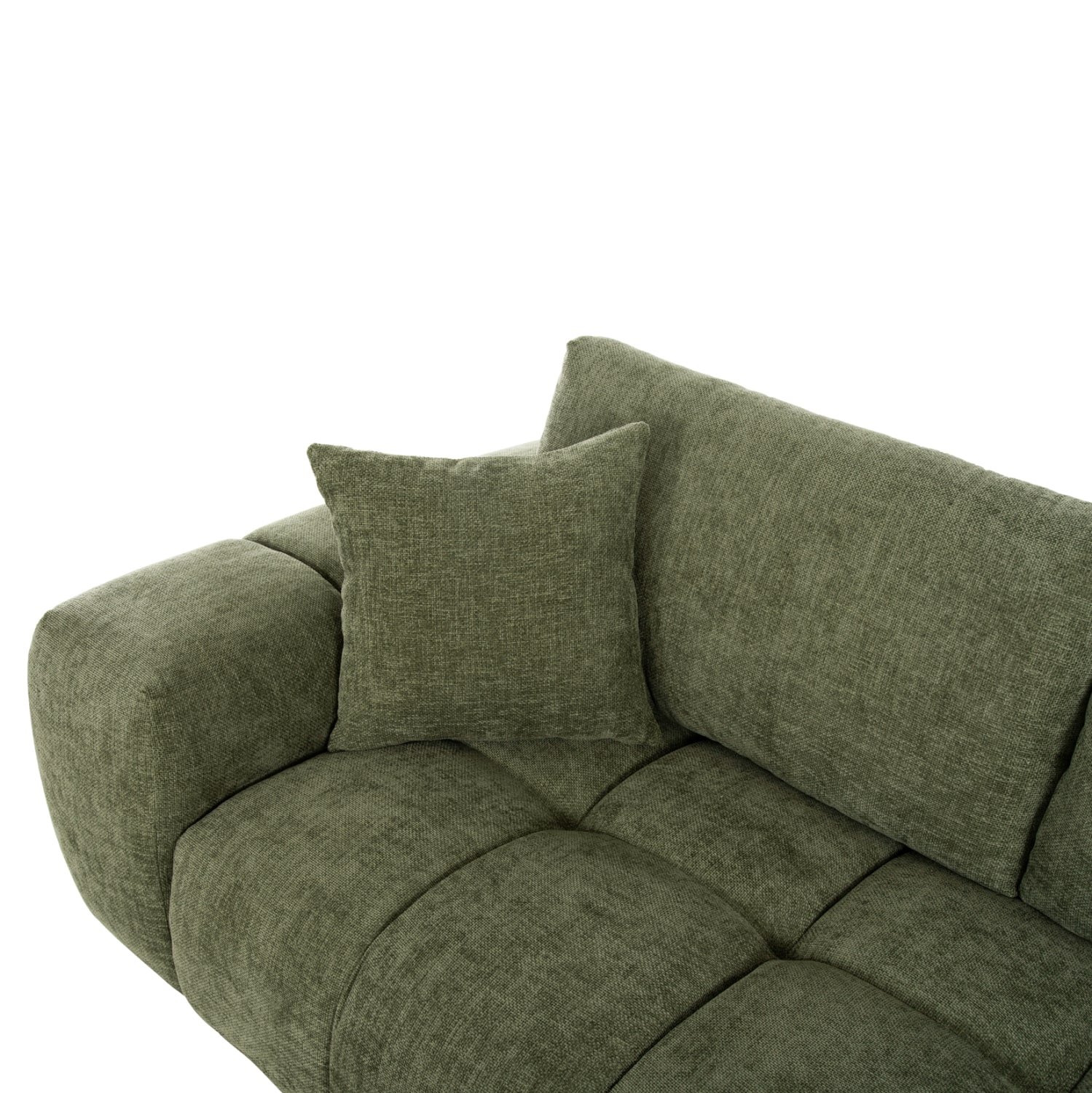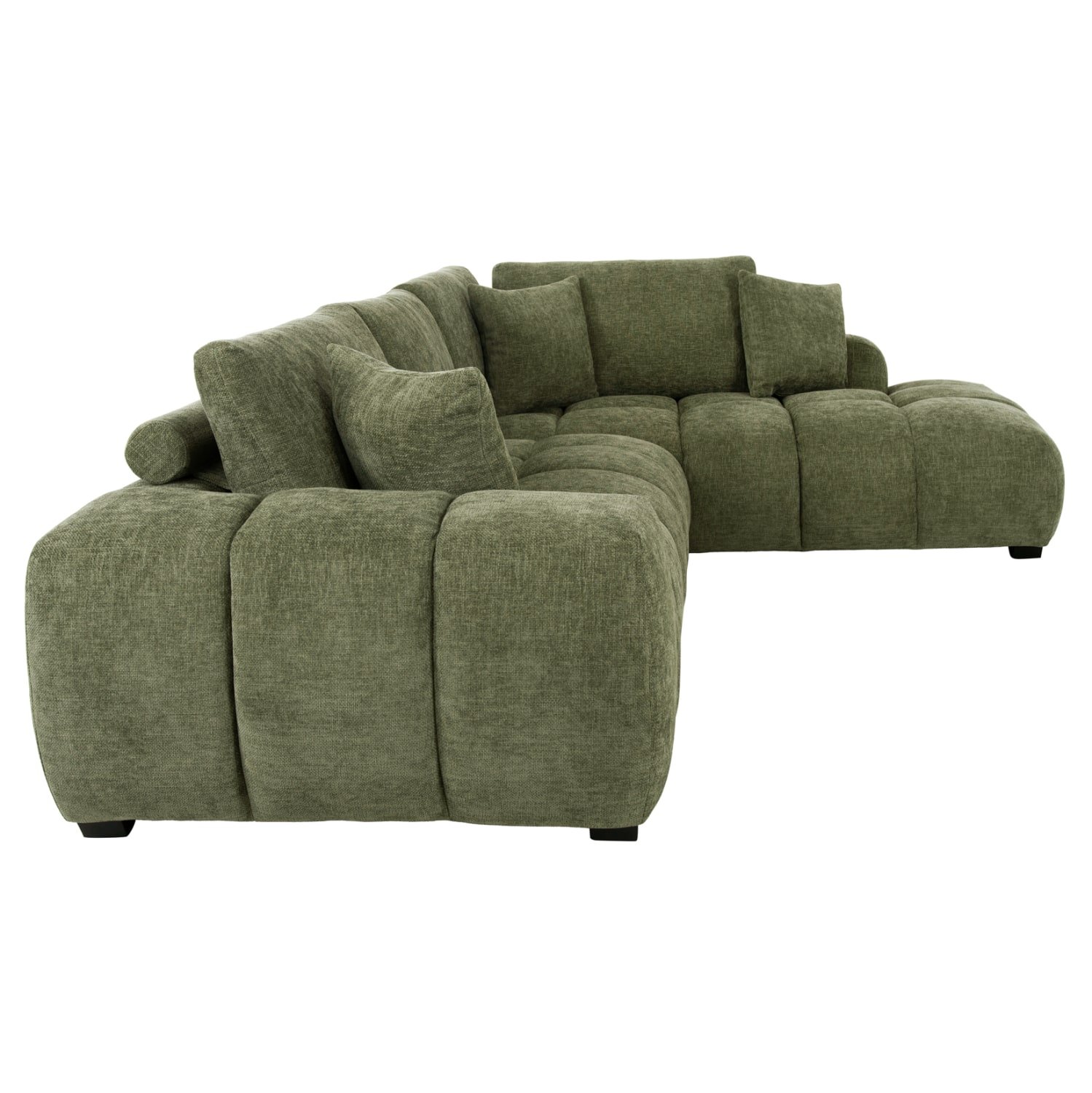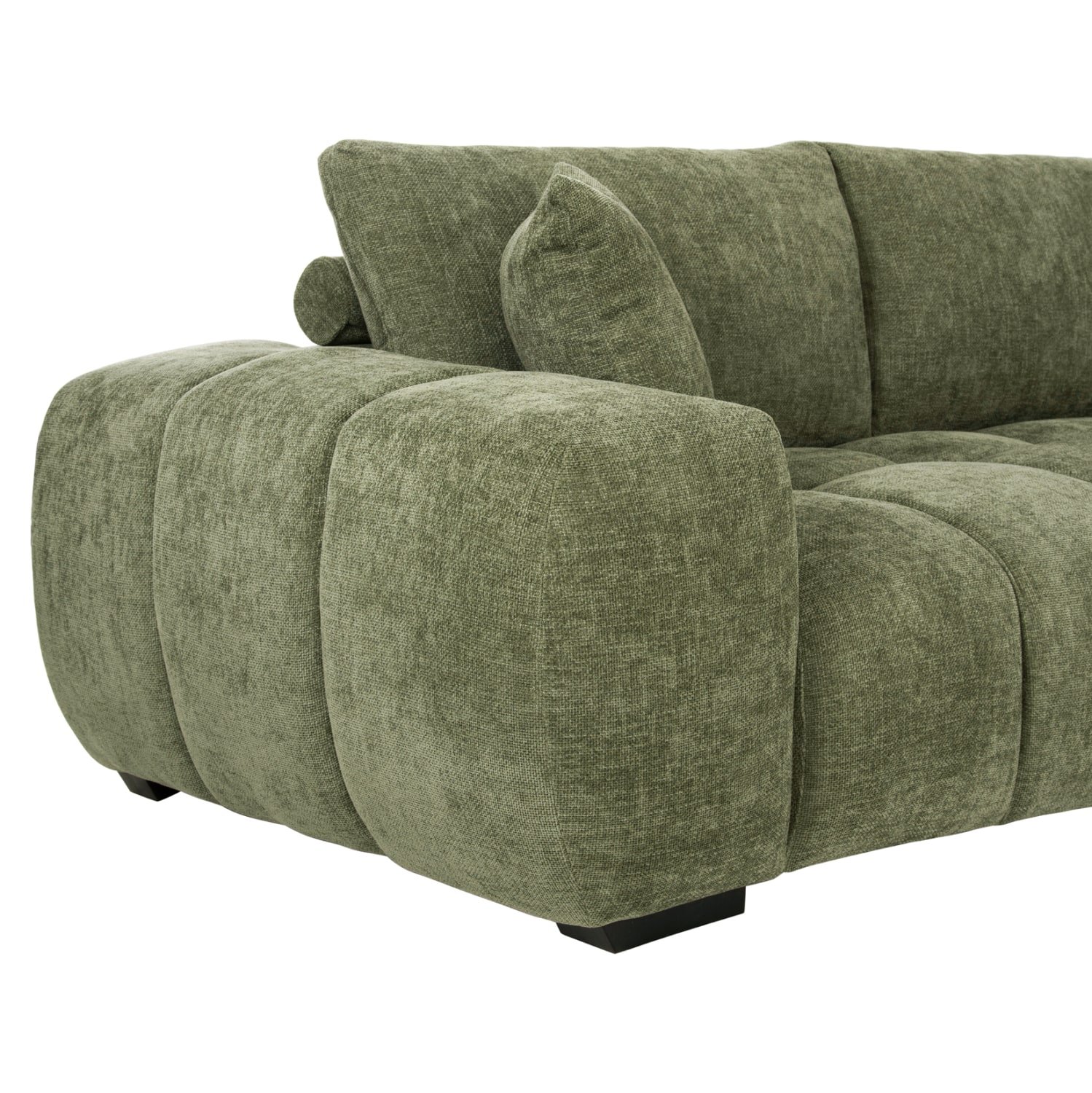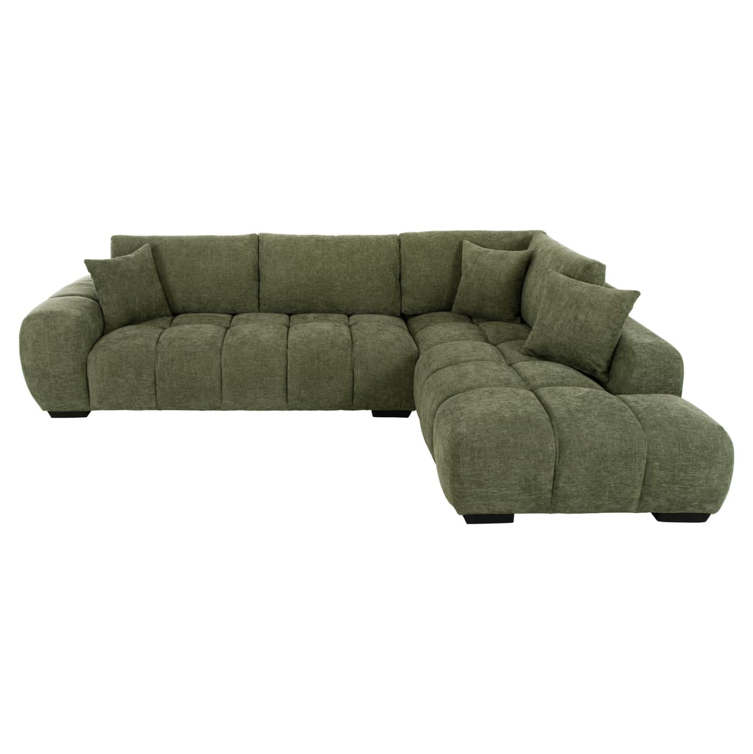 Σας παρουσιάζουμε τον COVEN, έναν υπέροχο μεγάλο καναπέ σε διαμόρφωση ΔΕΞΙΑΣ γωνίας (όπως τον κοιτάς) επενδυμένο με ποιοτικό ύφασμα σε ΠΡΑΣΙΝΟ χρώμα. Ξεκινώντας από το design, ο καναπές φτάνει μέχρι πολύ χαμηλά σε στυλ «ποδιάς» και διαθέτει φαρδιά χαμηλά πόδια-βάσεις σε μαύρο χρώμα. Τα μπράτσα είναι εντυπωσιακά φαρδιά, ενώ η επένδυση είναι σε στυλ καπιτονέ με τις έντονες ραφές! Το κομμάτι που σχηματίζει την γωνία είναι ίδιας αισθητικής και ενώνεται με τον κυρίως καναπέ με κατακόρυφους αναρτήρες πάνελ. Η πλάτη είναι χαμηλή και διαθέτει 4 μαξιλάρια πλάτης με «καραμέλες»(μακρόστενα κυλινδρικά μαξιλάρια) στο πίσω μέρος τους για καλύτερη στήριξη, αλλά και 3 μικρότερα διακοσμητικά μαξιλαράκια. Το κάθισμα διαθέτει γεμίσματα αφρού μεσαίας σκληρότητας σε συνδυασμό με ελατήρια pocket springs, προσφέροντας απαράμιλλη άνεση. Και φυσικά, σας προσφέρουμε αυτόν τον καναπέ με εγγύηση σκελετού 3 ετών!