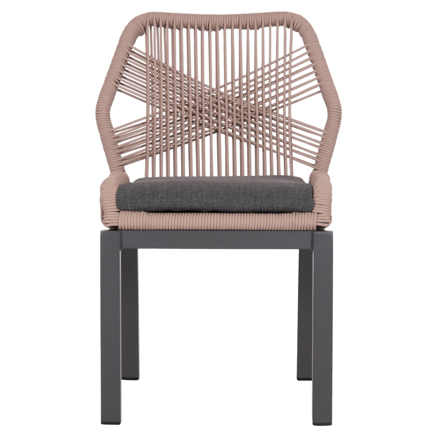 Η καρέκλα τραπεζαρίας εξωτερικού χώρου HOWARD έχει ΣΚΟΥΡΟ ΓΚΡΙ σκελετό αλουμινίου και αναπαυτικό μαξιλάρι στο κάθισμα σε ίδιο χρώμα. Η πλάτη είναι από σχοινί TEXTILENE σε ΜΠΕΖ χρώμα. Μια ποιοτική πρόταση τόσο για επαγγελματική χρήση, όσο και για οικιακή.