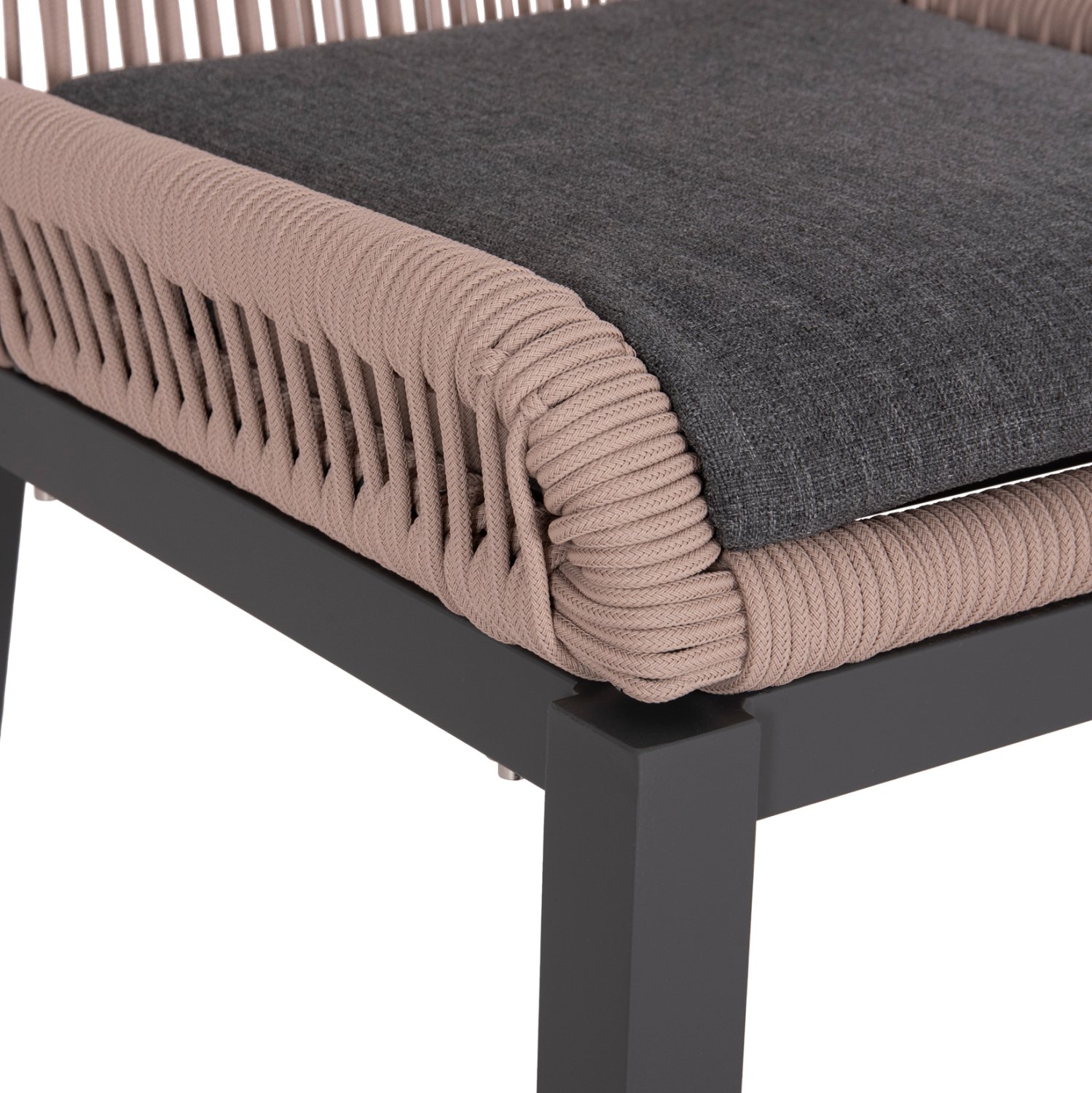 Η επένδυση της πολυθρόνας έχει γίνει με σχοινί από textilene, και είναι αδιάβροχο ενώ διαθέτει και UV protection για ανθεκτικότητα και ασύγκριτη αντοχή σε εξωτερικούς χώρους.