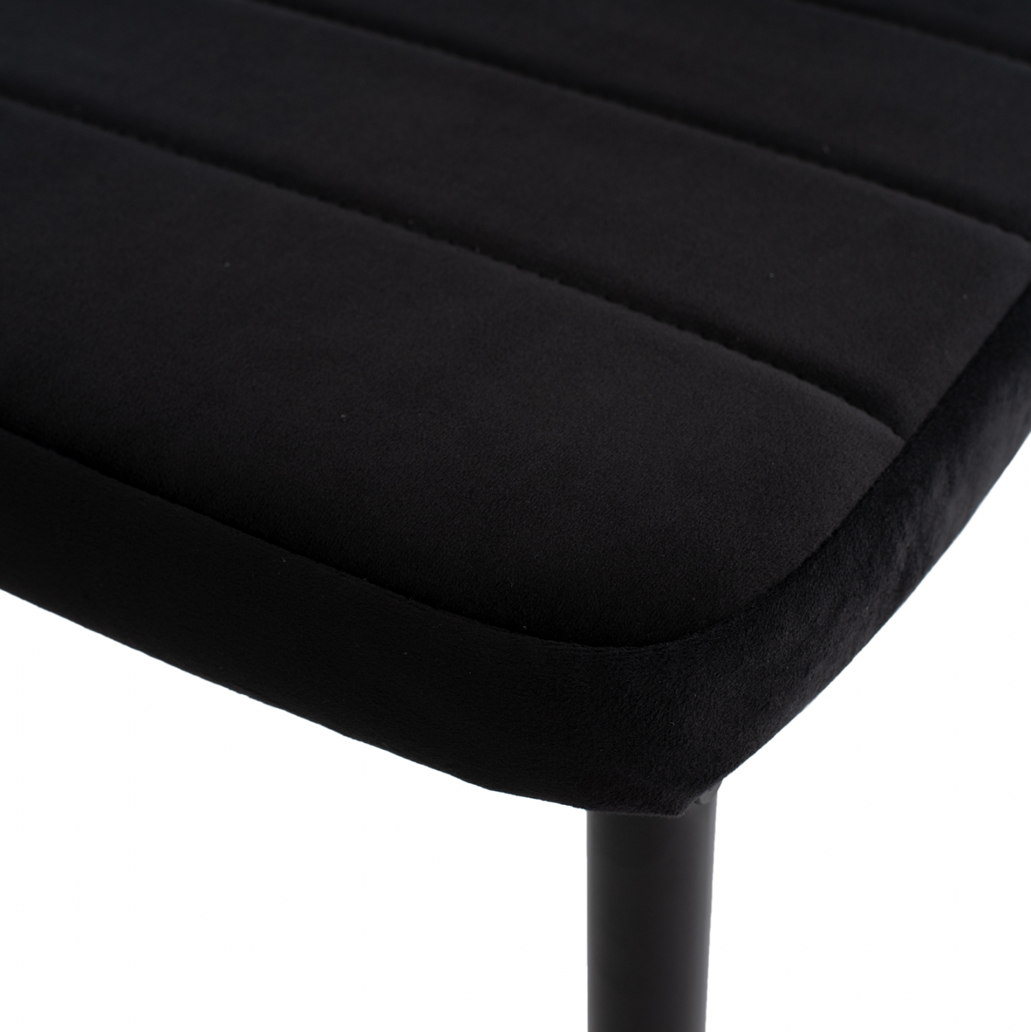 Καρέκλα κουζίνας από σκελετό μεταλλικό K/D μαύρου χρώματος και επένδυση από βελούδινο ύφασμα σε μαύρη απόχρωση.