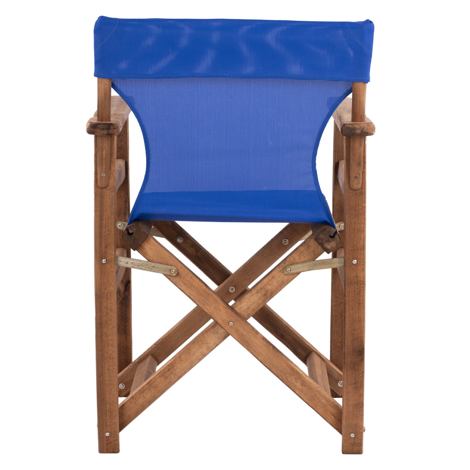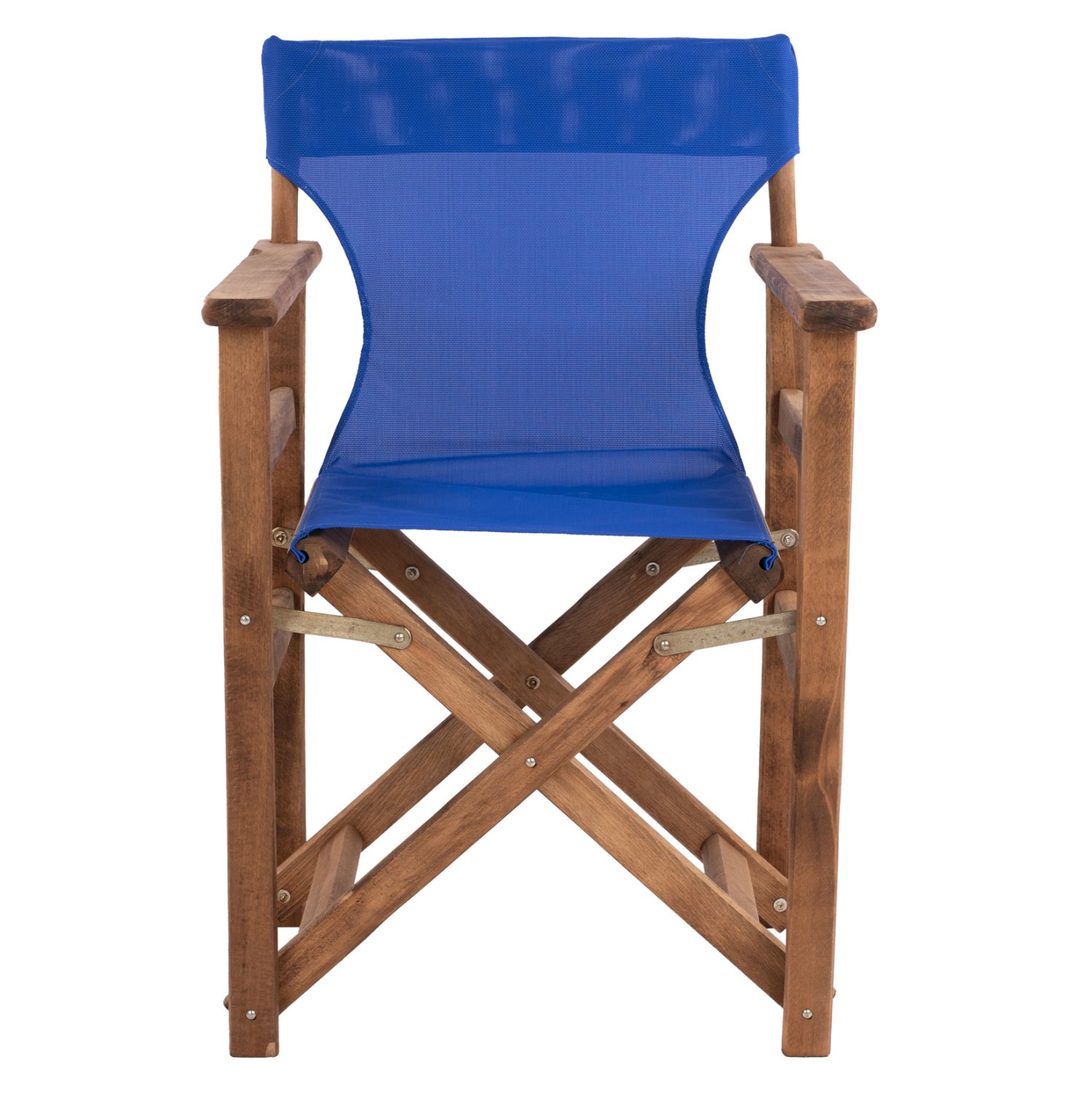 Κατασκευασμένη από ενισχυμένο σκελετό 100% μασίφ ξύλο φουρνιστής οξιάς σε καρυδί απόχρωση, με ύφασμα διάτρητο PVC σε μπλε χρώμα.