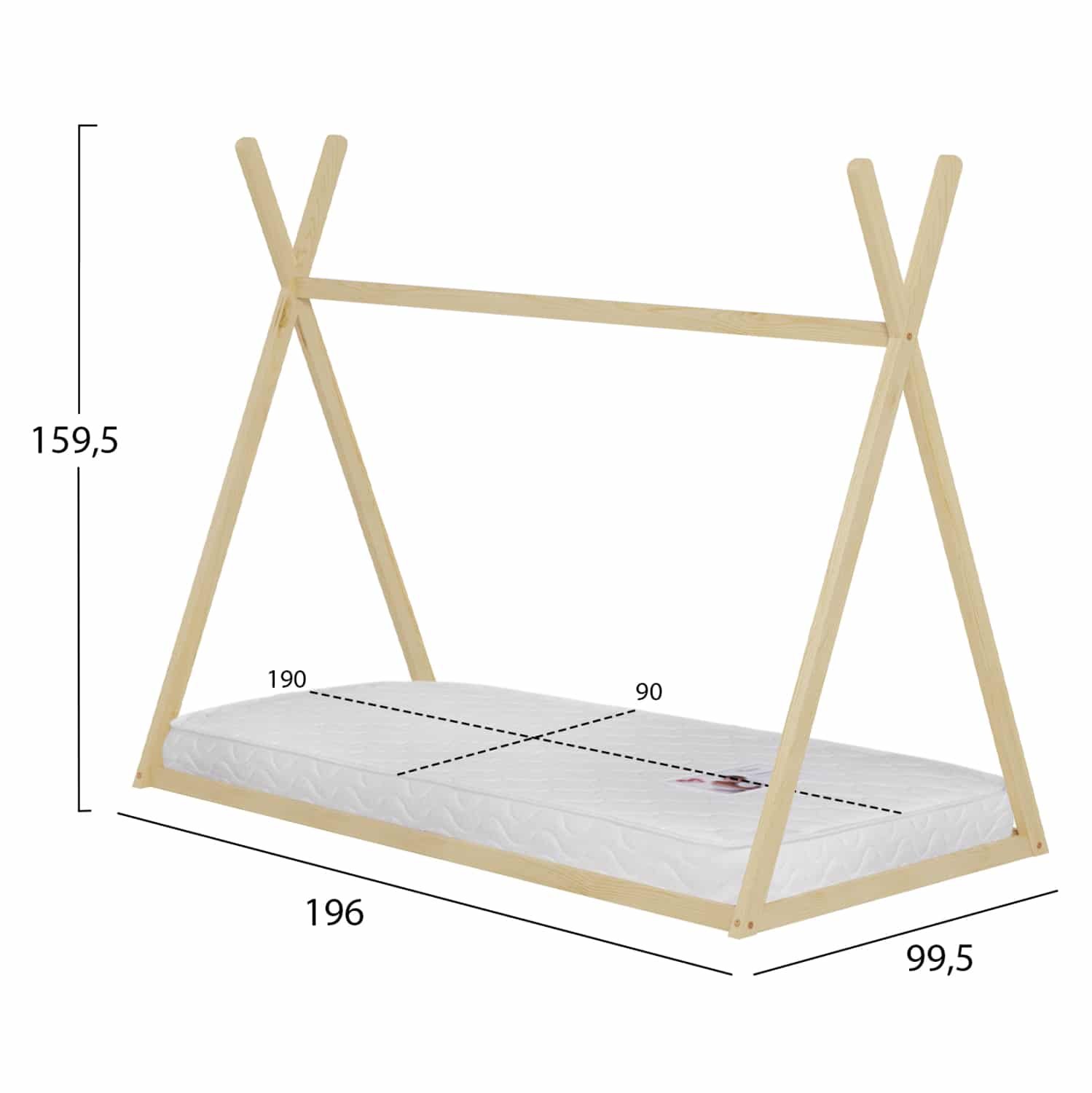 Το παιδικό κρεβάτι MUNK τύπου Montessori σε διάσταση για στρώμα 90×190εκ, είναι κατασκευασμένο από ξύλο πεύκου σε ΦΥΣΙΚΟ χρώμα. Το κρεβάτι έχει σχήμα σκηνής και «κάθεται» απευθείας στο έδαφος, ενώ το στρώμα τοποθετείται σε τάβλες από κόντρα-πλακέ ξυλεία.