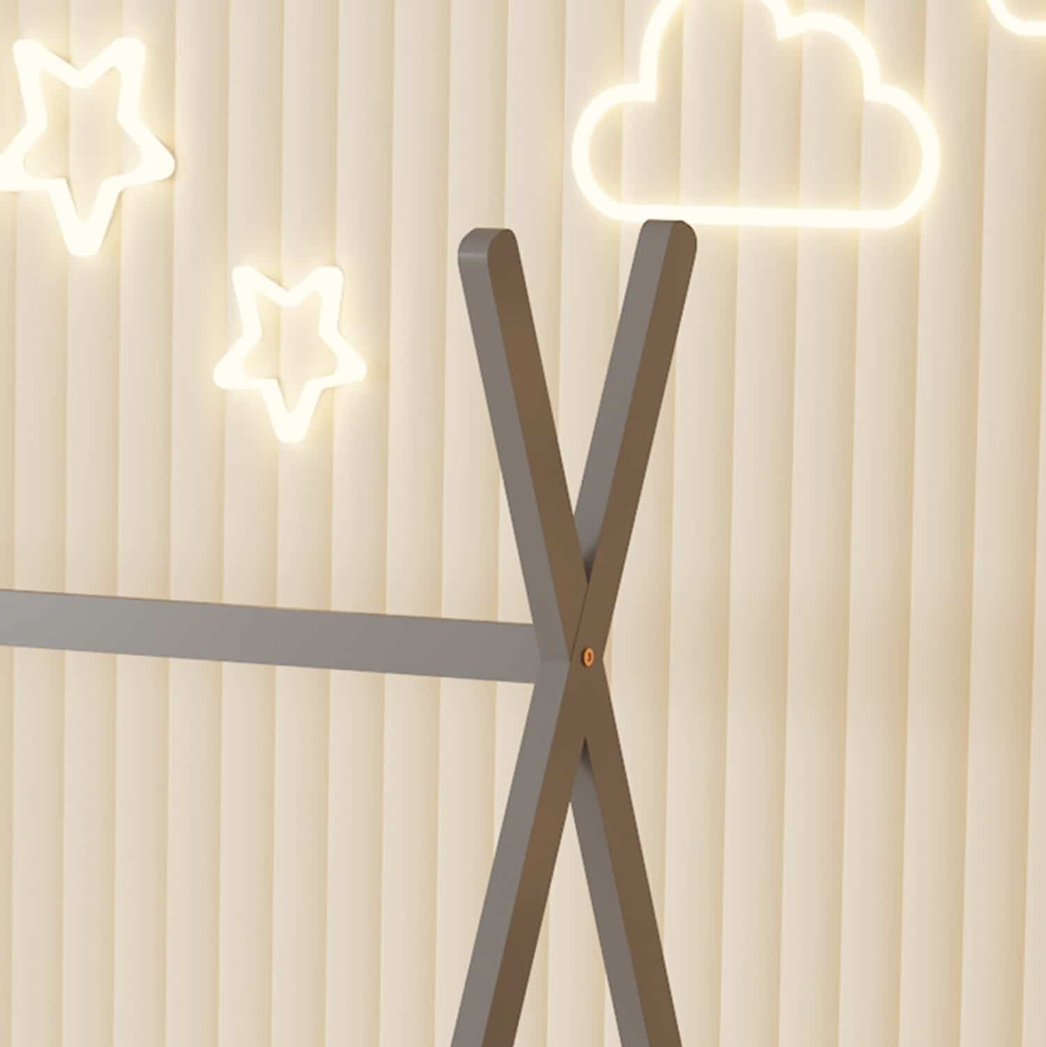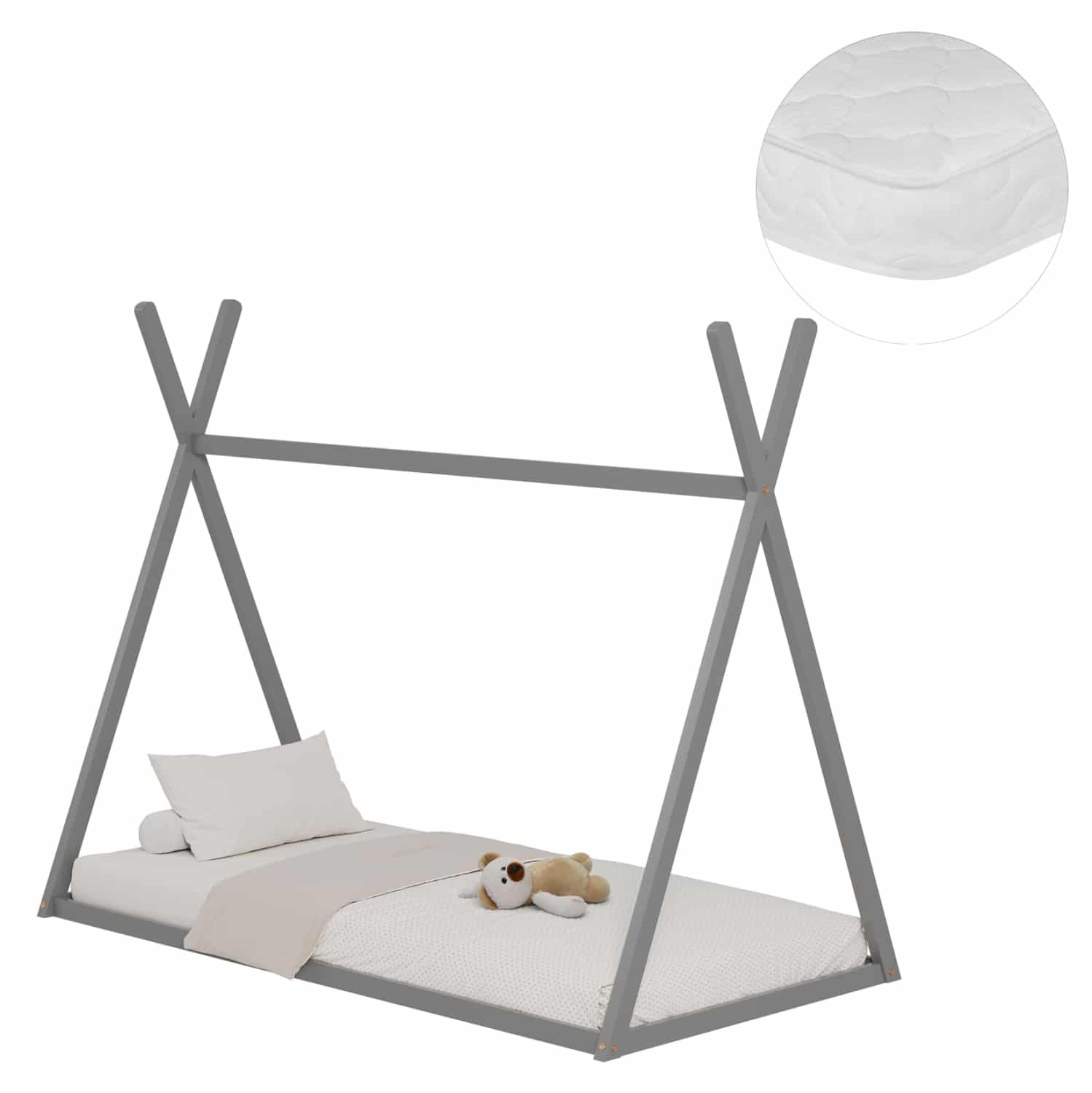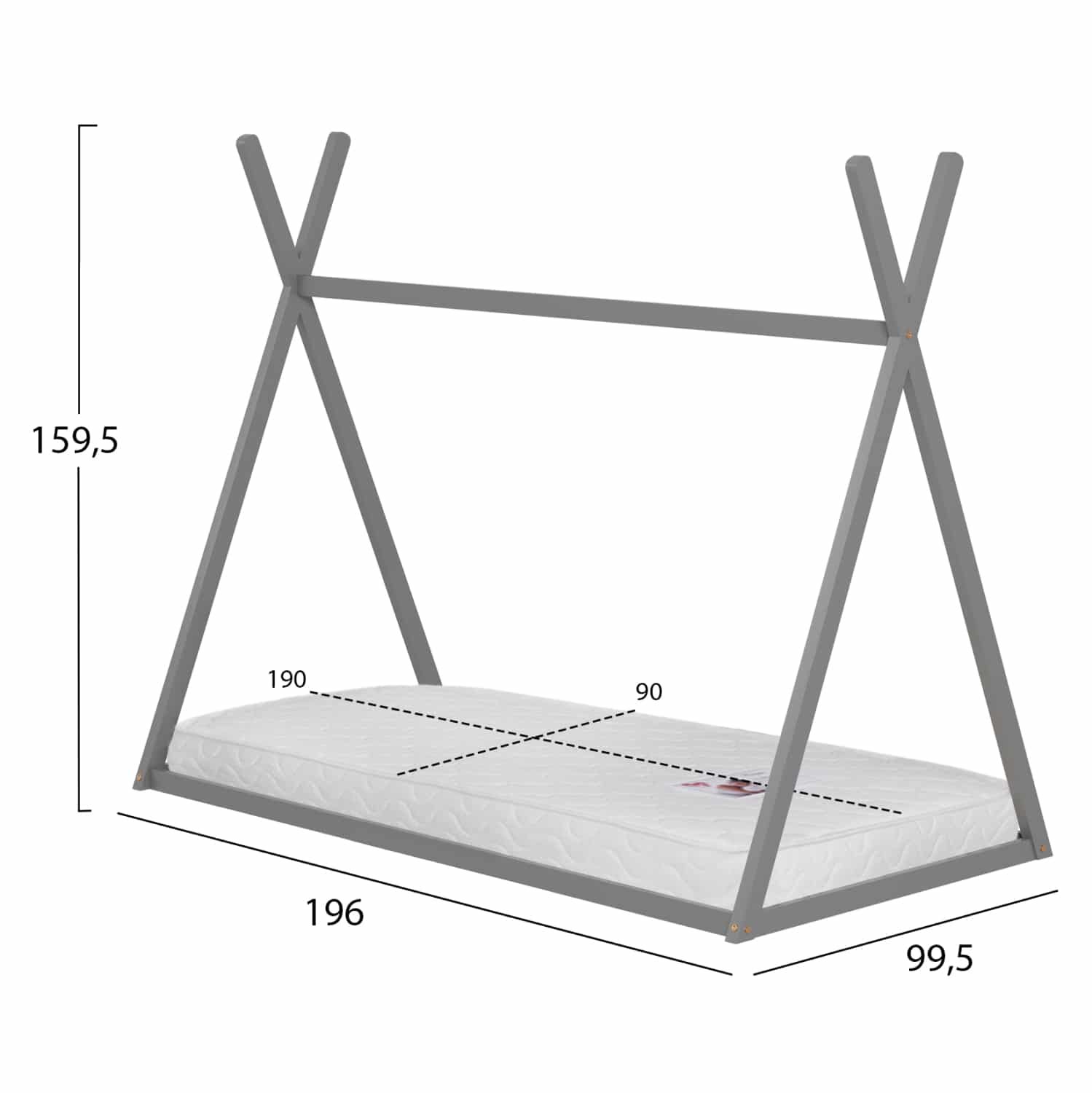 Το παιδικό κρεβάτι MUNK τύπου Montessori σε διάσταση για στρώμα 90×190εκ, είναι κατασκευασμένο από ξύλο πεύκου σε ΓΚΡΙ χρώμα. Το κρεβάτι έχει σχήμα σκηνής και «κάθεται» απευθείας στο έδαφος, ενώ το στρώμα τοποθετείται σε τάβλες από κόντρα-πλακέ ξυλεία.