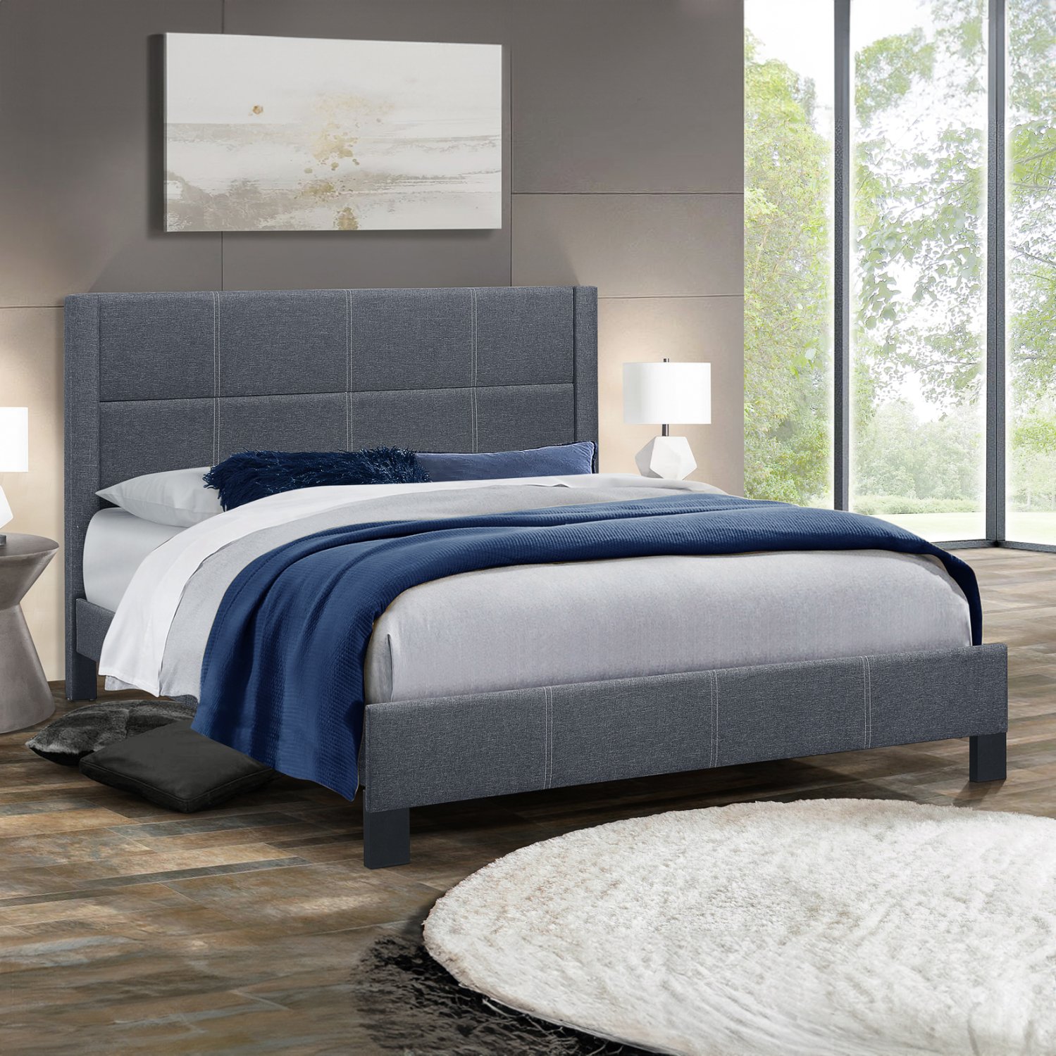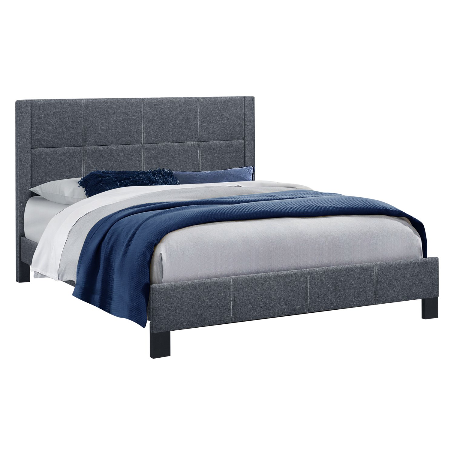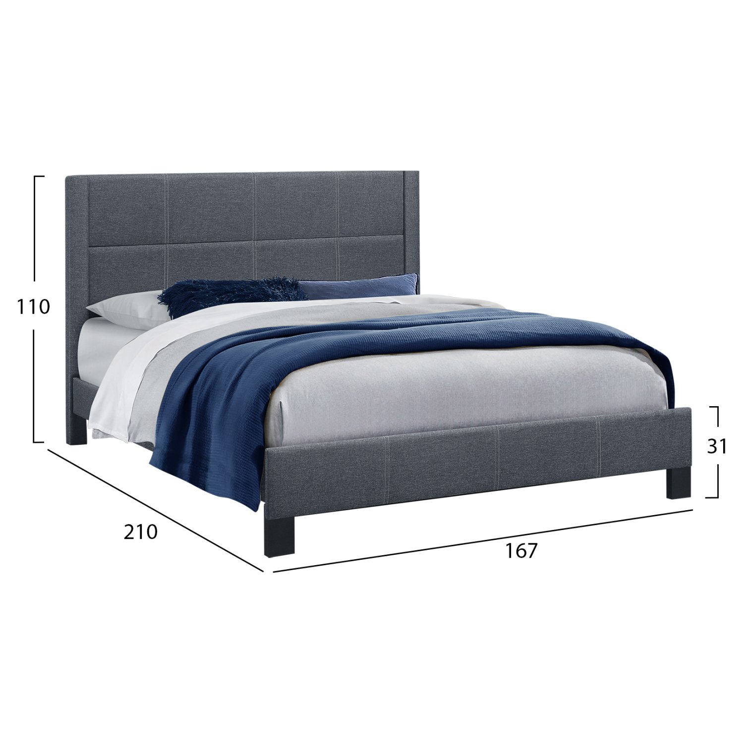 Γνωρίστε το υπέρδιπλο κρεβάτι TRILLOP. Διαθέτει ψηλό κεφαλάρι, επενδυμένο με καπιτονέ τεχνοτροπία σε μεγάλα τετράγωνα, ενώ και όλη η επένδυση του κρεβατιού είναι από ανάγλυφο ύφασμα. Το ΣΚΟΥΡΟ ΓΚΡΙ χρώμα σε όλο το κρεβάτι είναι όμορφο και ουδέτερο και μπορεί να συνδυαστεί με πληθώρα διακοσμητικών μοτίβων. Η στήριξη του στρώματος γίνεται με 14 κλασικές τάβλες. Ιδανικό κρεβάτι κυρίως για το σπίτι, σας επιτρέπει απλά και όμορφα να φτιάξετε το υπνοδωμάτιο των ονείρων σας!