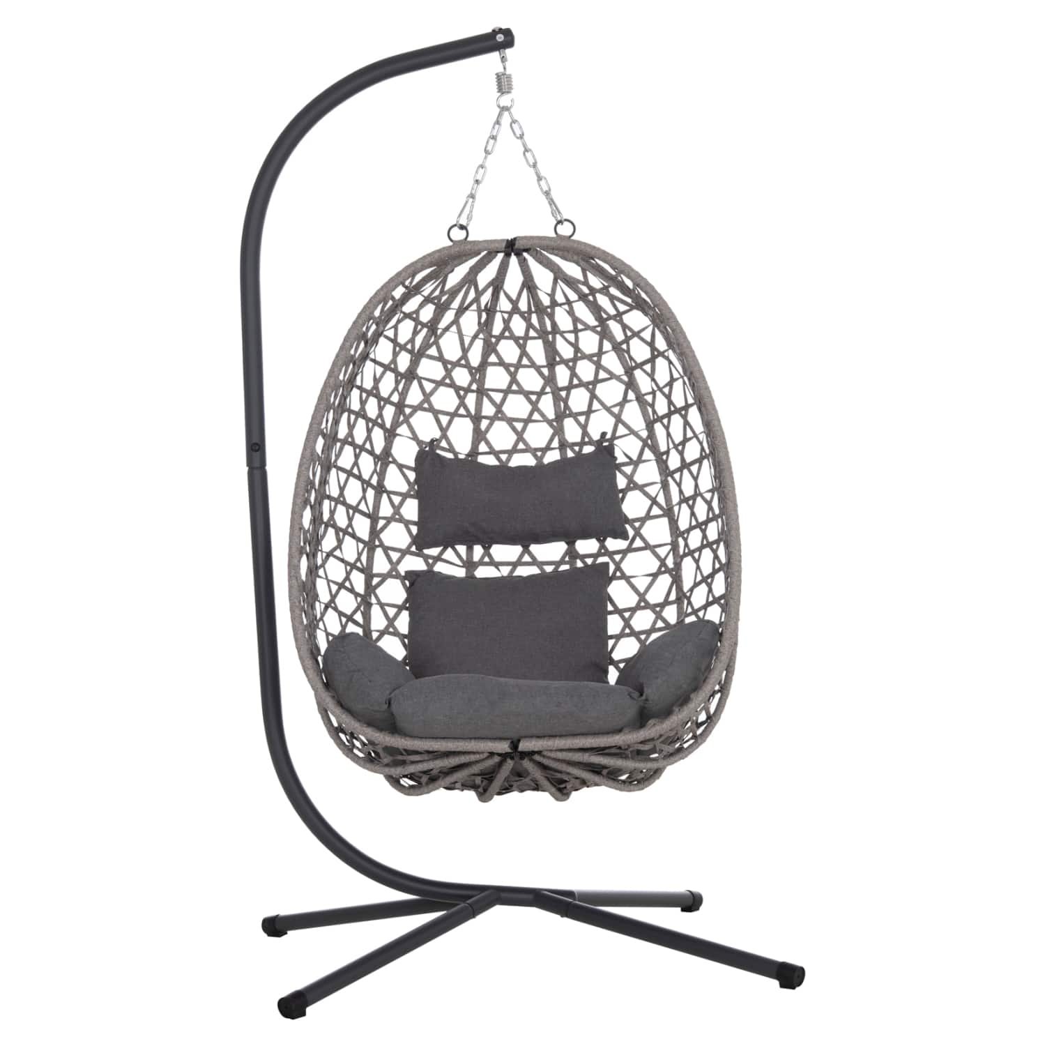 Κρεμαστή Φωλιά Μονή NESTA με Γκρι Μεταλλικό Σκελετό και P.E. Rattan Πλέξη