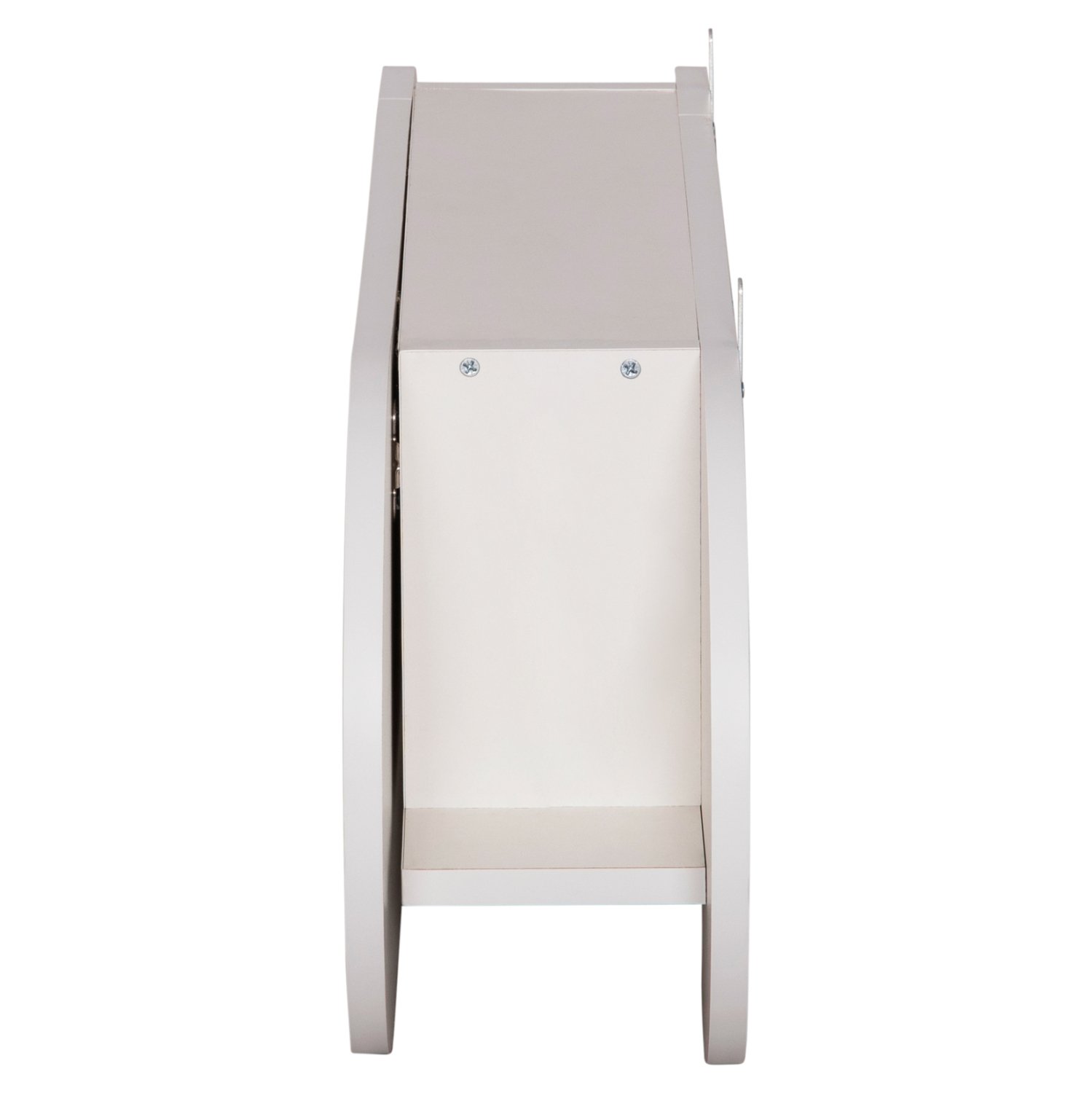 Η επιτοίχια κρεμάστρα εισόδου μελαμίνης STOR σε ΛΕΥΚΟ χρώμα είναι μια πρακτική πρόταση διακόσμησης για τον χώρο υποδοχής του σπιτιού σας, που θα σας βοηθήσει να δημιουργήσετε έναν καλά οργανωμένο και τακτοποιημένο χώρο. Έχει σχήμα οβάλ και διαθέτει 6 μονές κρεμάστρες (γαντζάκια) και 1 ορθογώνιο χώρο τοποθέτησης αντικειμένων/ράφι, το οποίο όμως κλείνει, αφού η εμπρός επιφάνεια αποτελεί την πόρτα του ραφιού. Αυτή η πόρτα ανοίγει προς τα επάνω και «κρύβει» εκτός από το ράφι, και τις κρεμάστρες.
