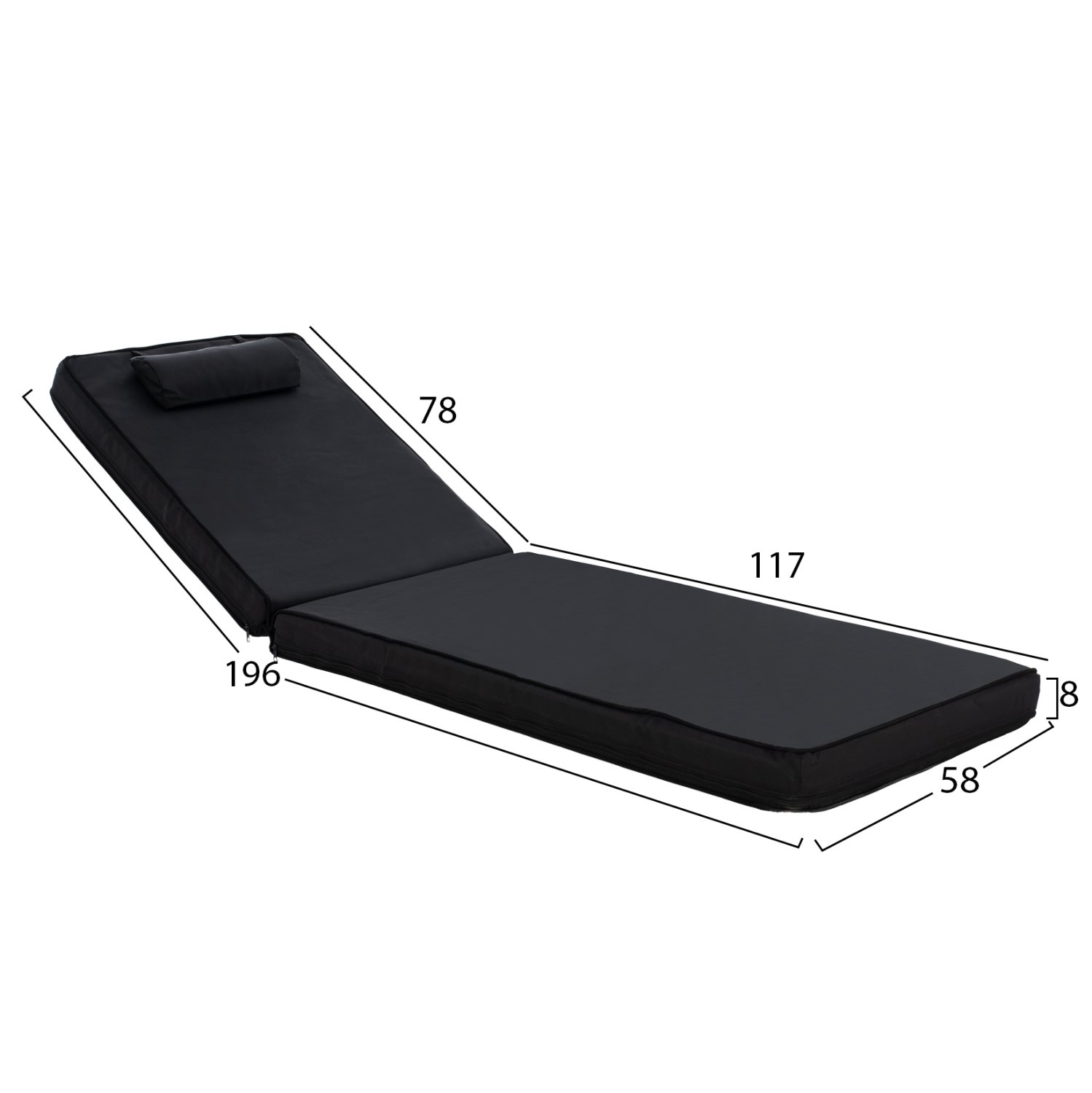 ΜΑΞΙΛΑΡΙ ΞΑΠΛΩΣΤΡΑΣ TEXTILENE 600gr SIFNOS ΜΑΥΡΟ HM11236.05T 196(117+1+78)x58x9εκ.