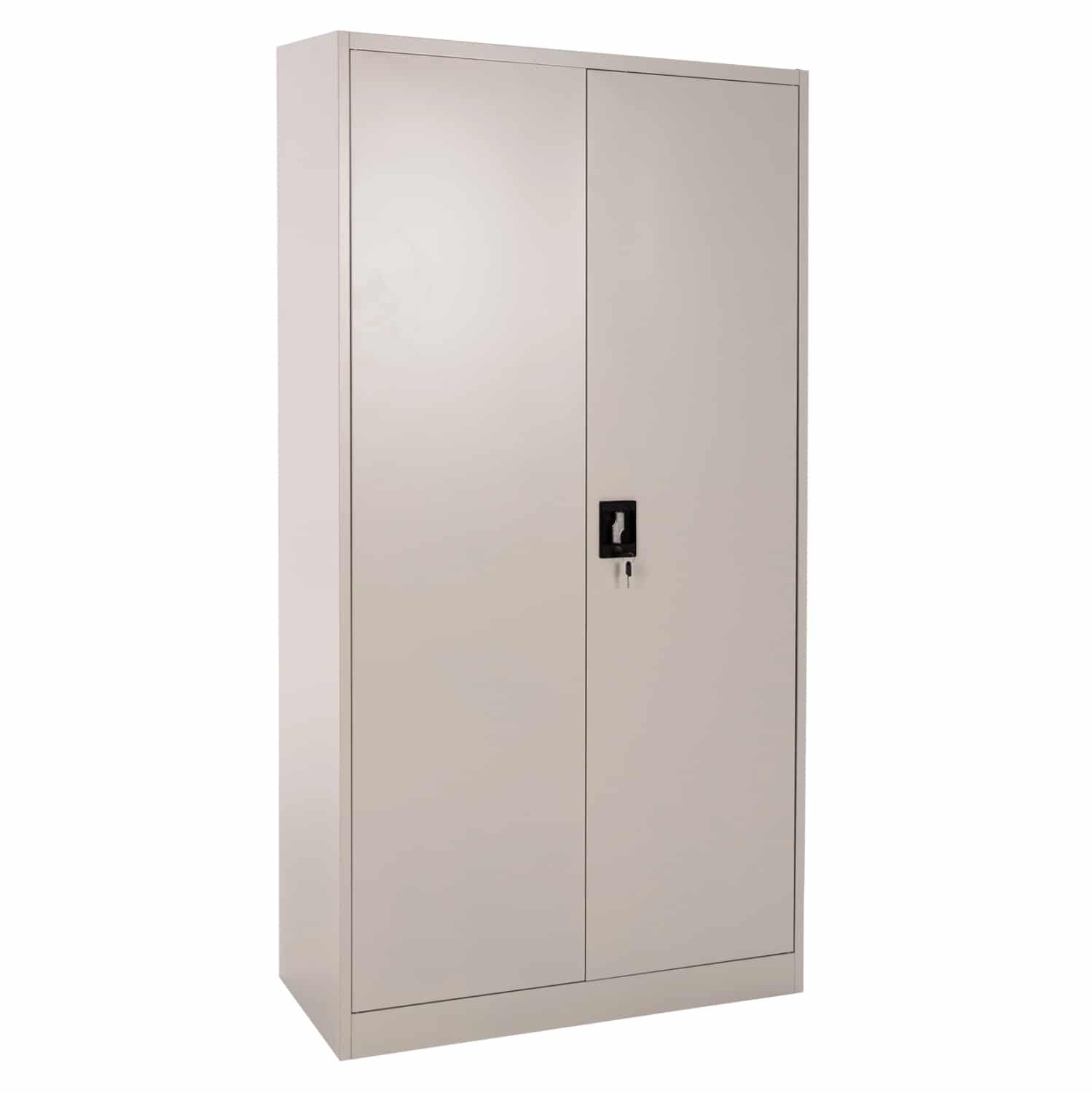 Η DURON είναι μια πρακτικότατη μεταλλική ντουλάπα που έχει φτιαχτεί με γνώμονα την χωρητικότητα και την ανθεκτικότητα. Είναι δίφυλλη με τις δύο πόρτες να κλείνουν ακριβώς στην μέση της κατασκευής, ενώ το εσωτερικό είναι ένας ενιαίος χώρος χωρίς κάθετα χωρίσματα. Διαθέτει 4 ράφια που δημιουργούν 5 αποθηκευτικούς χώρους. Οι πόρτες διαθέτουν κλειδαριά που κλειδώνει με κλειδί, ενώ το χρώμα της ντουλάπας είναι πολύ ανοιχτό γκρι.