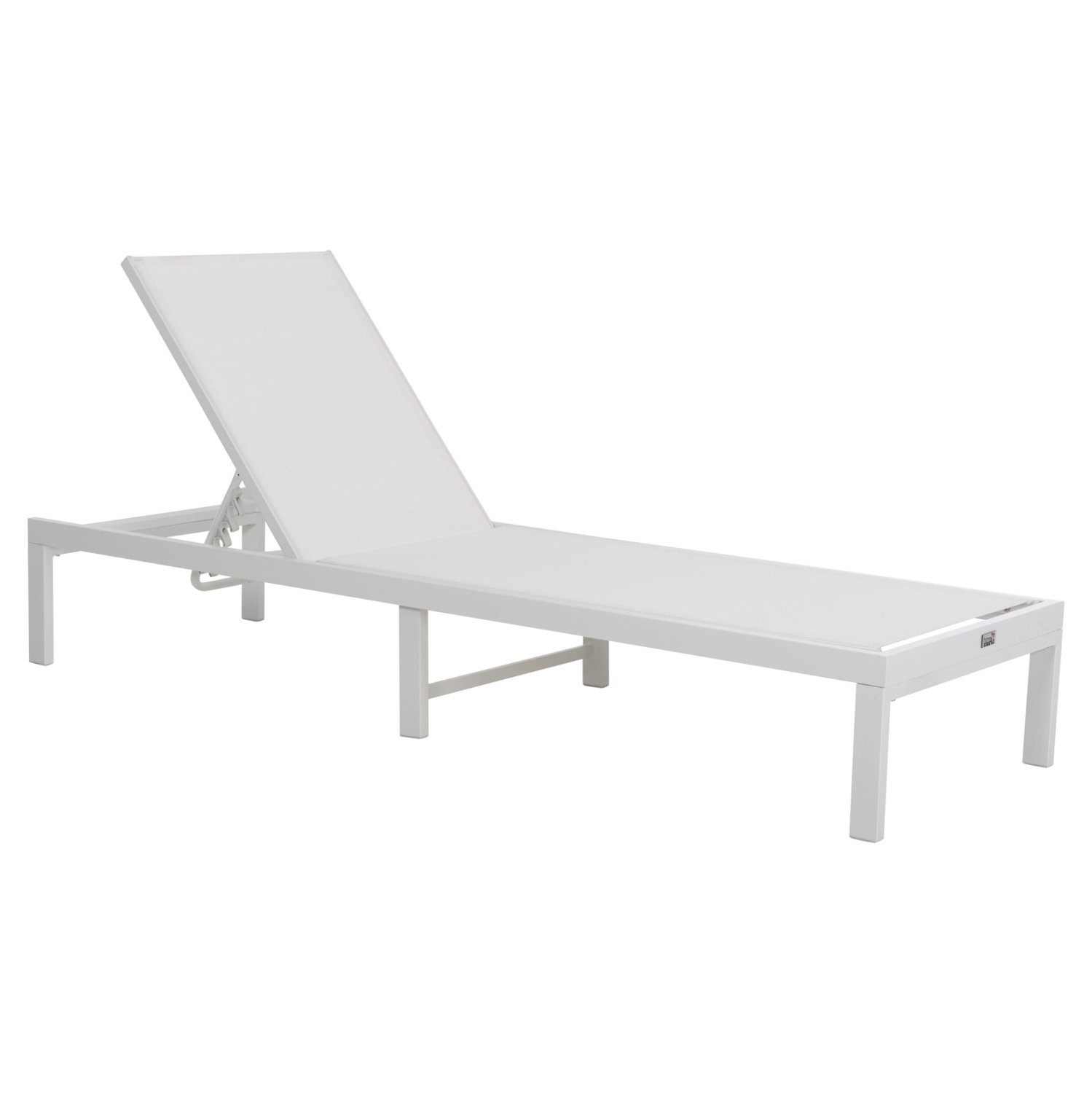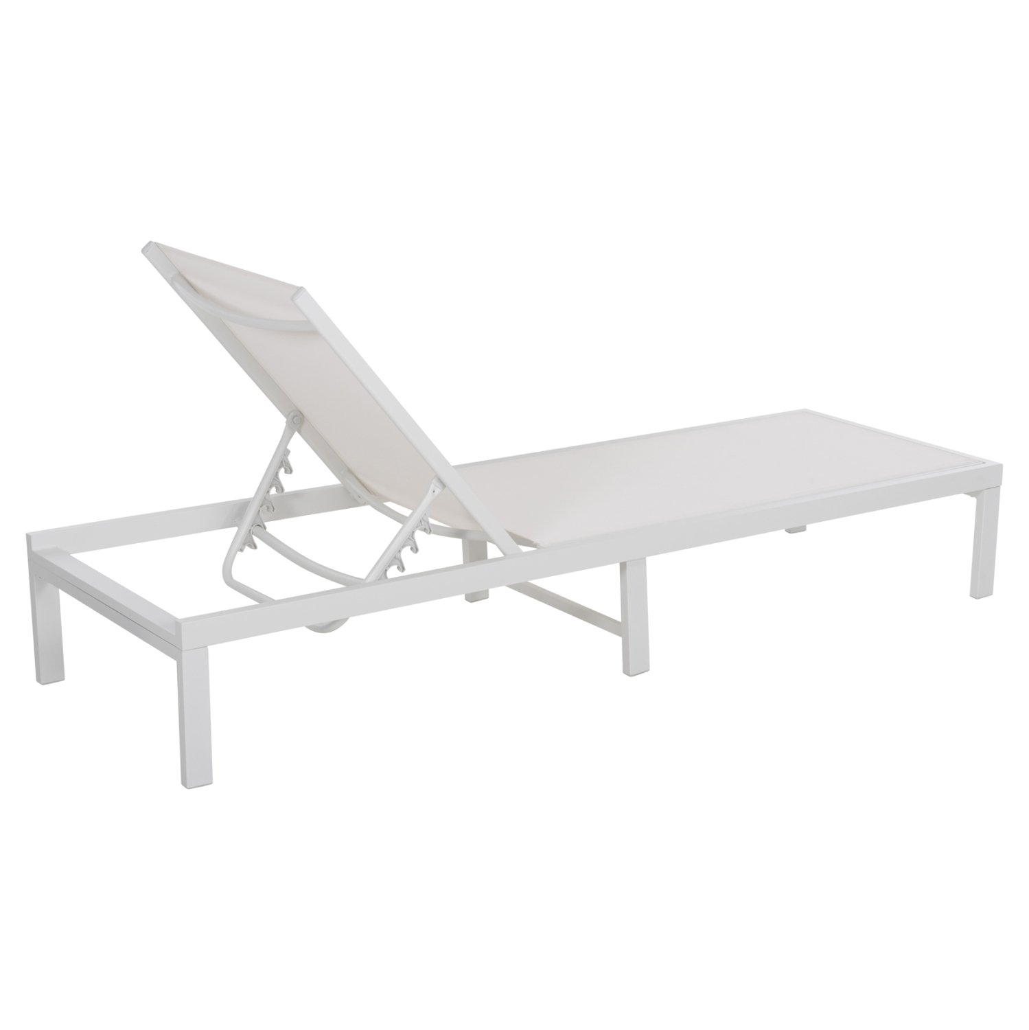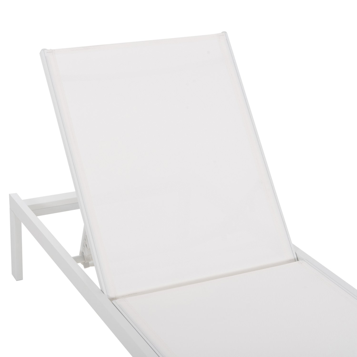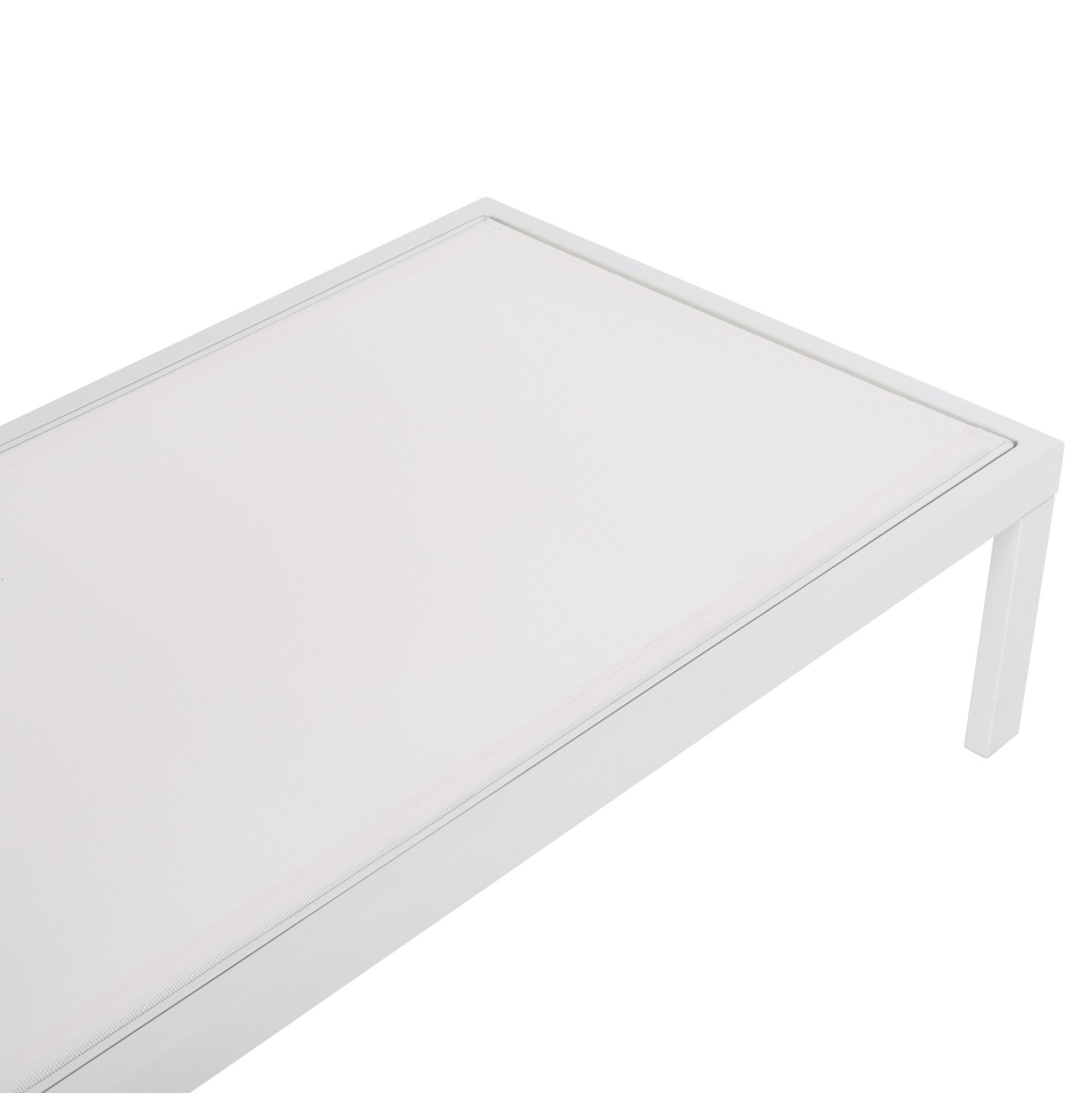 Η επαγγελματική ξαπλώστρα παραλίας THATCHER σε ΛΕΥΚΟ χρώμα είναι όμορφη και πολυτελής. Είναι κατασκευασμένη από αλουμίνιο και textilene επίσης σε ΛΕΥΚΟ χρώμα ενώ διαθέτει και έξτρα πόδια στην μέση του μήκους της για ακόμα μεγαλύτερη στιβαρότητα. Σχεδιαστικά οι «γραμμές» της είναι ξεκάθαρες και τετραγωνισμένες. Η σκαλιέρα έχει 5 επίπεδα (μαζί με την flat).