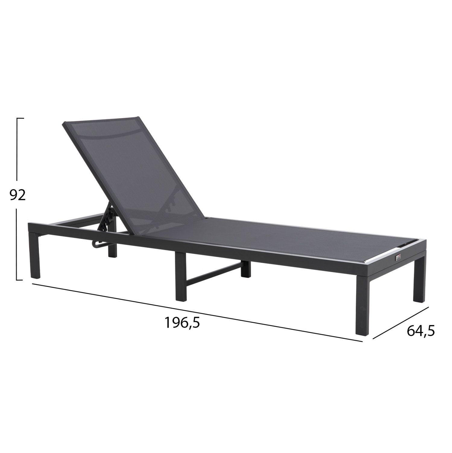 Η επένδυση της ξαπλώστρας έχει γίνει με αδιάβροχο ενισχυμένο ύφασμα textilene (2Χ1- 600gr). Αυτό είναι ένα παχύ, ισχυρό και ανθεκτικό πολυεστερικό ύφασμα. Σημαίνει ότι είναι κατασκευασμένο από πολυεστερικά νήματα επικαλυμμένα με PVC.