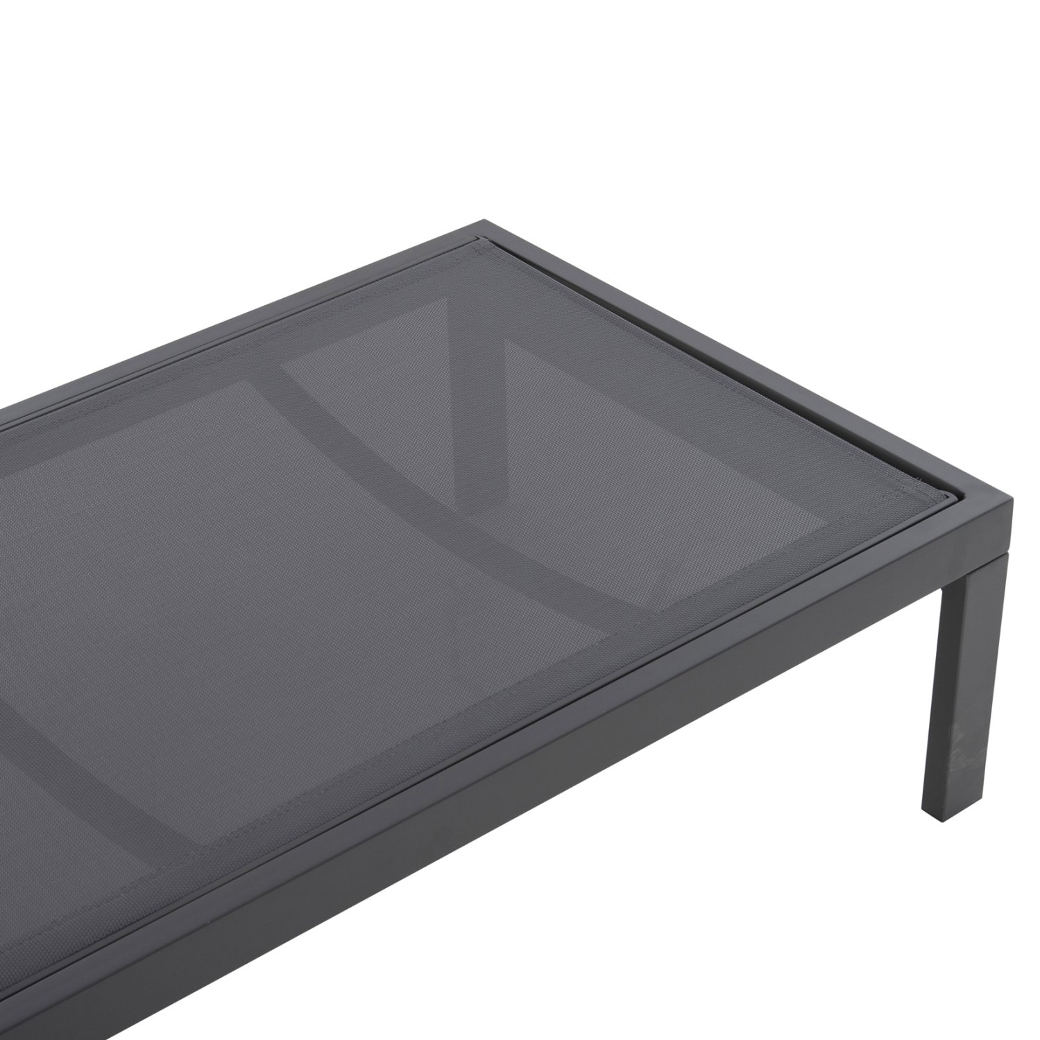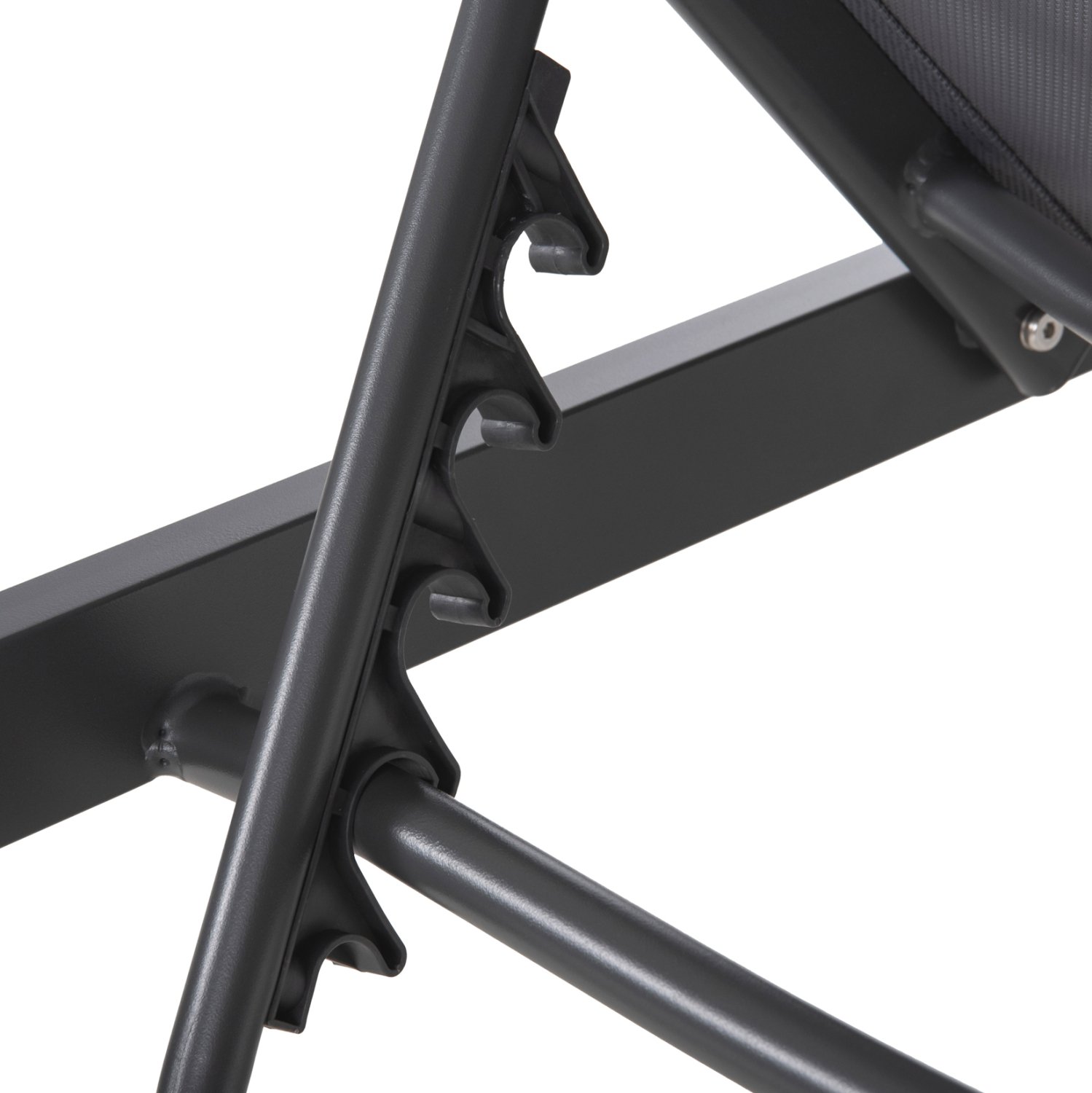 Η επαγγελματική ξαπλώστρα παραλίας THATCHER σε ΑΝΘΡΑΚΙ χρώμα είναι όμορφη και πολυτελής. Είναι κατασκευασμένη από αλουμίνιο και textilene επίσης σε ΑΝΘΡΑΚΙ χρώμα ενώ διαθέτει και έξτρα πόδια στην μέση του μήκους της για ακόμα μεγαλύτερη στιβαρότητα. Σχεδιαστικά οι «γραμμές» της είναι ξεκάθαρες και τετραγωνισμένες. Η σκαλιέρα έχει 5 επίπεδα (μαζί με την flat)