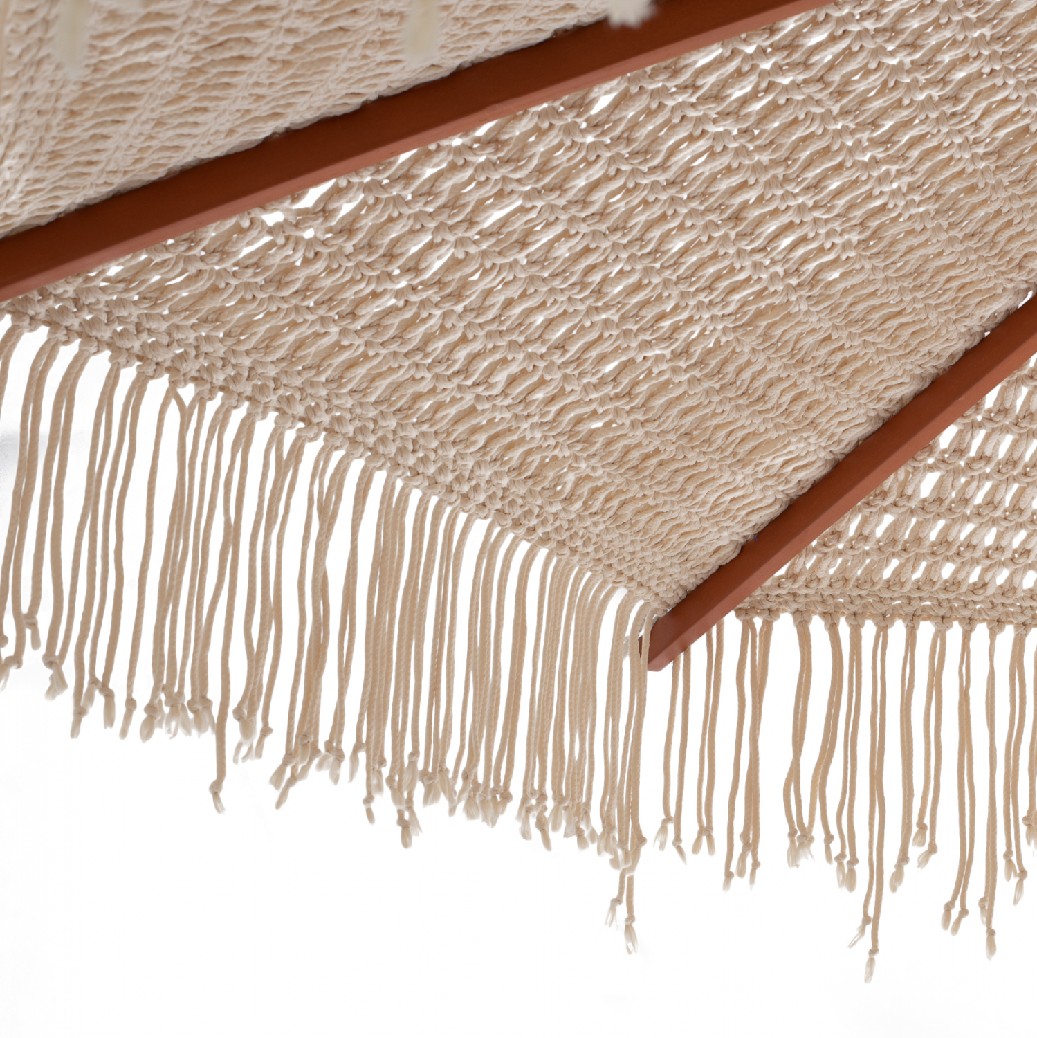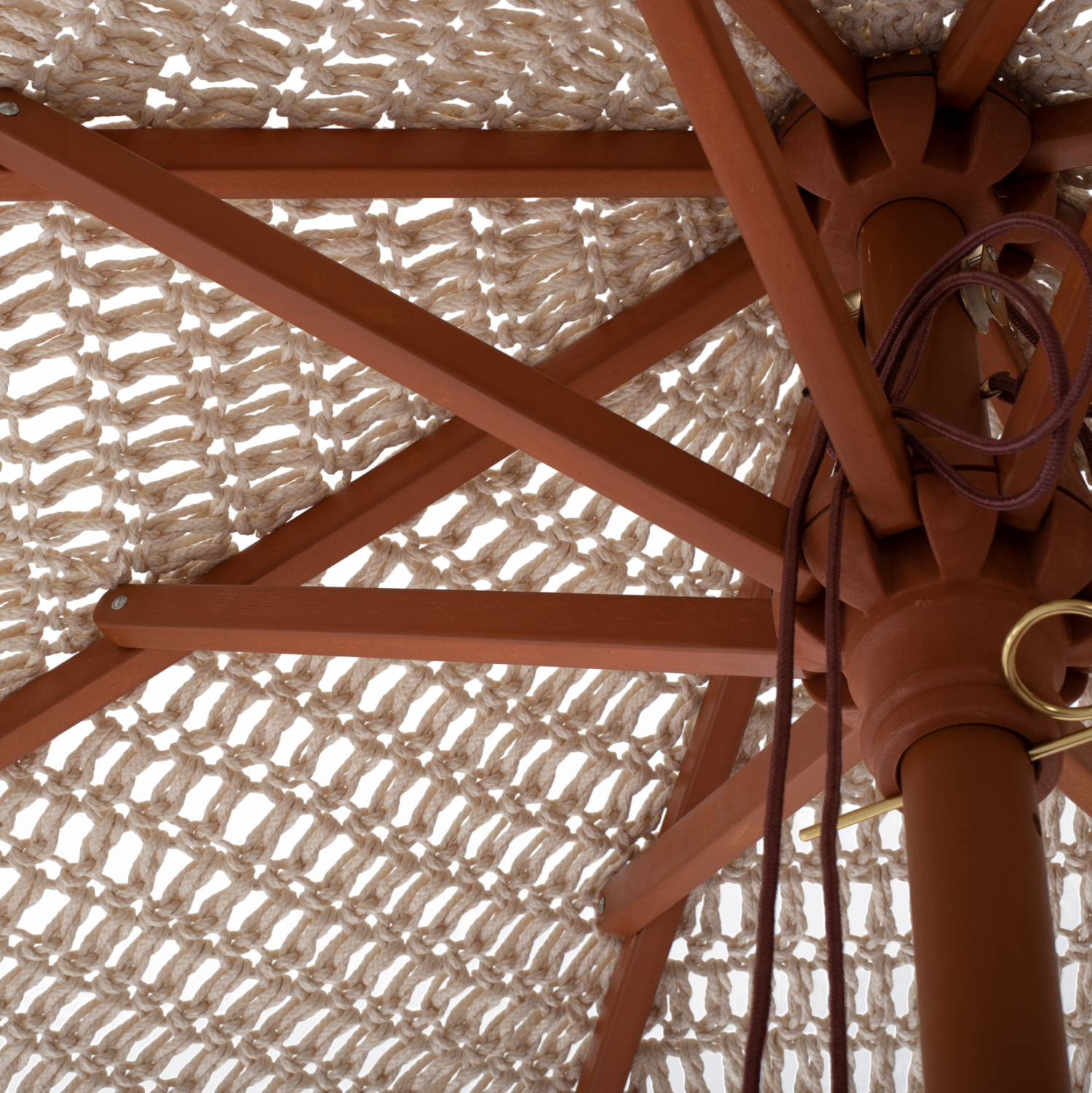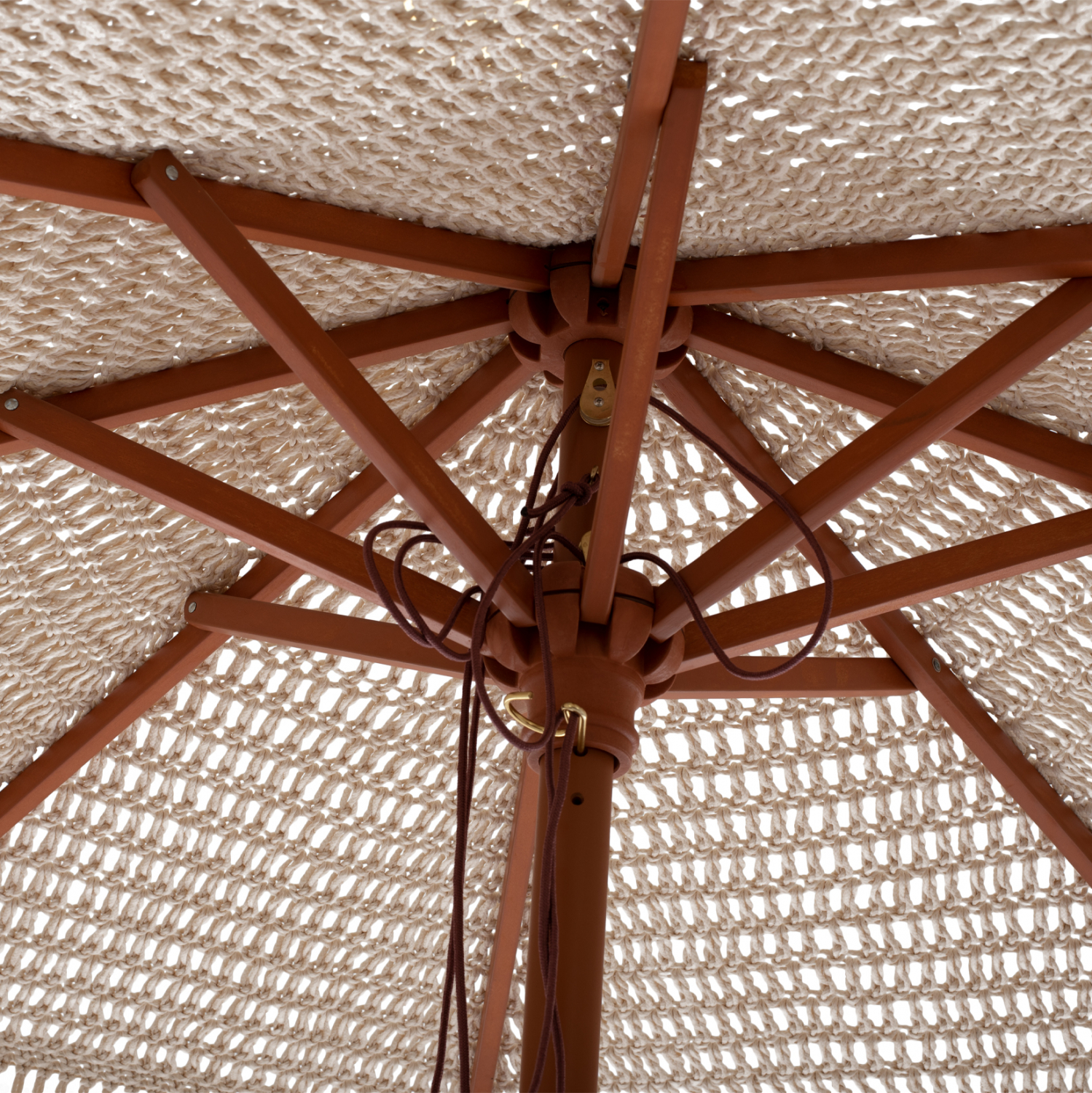Ομπρέλα Φ2,30μ. με ξύλινο σκελετό, 8 ακτίνες και διπλή τροχαλία, με πλέξη ΜΑΚΡΑΜΕ, σε μπεζ απόχρωση.