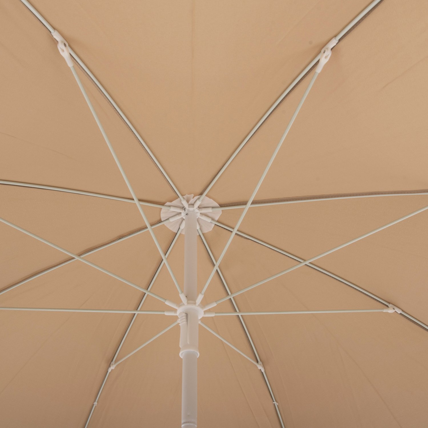 Ομπρέλα θαλάσσης στρογγυλή με ανάκληση και flaps, σε ΜΟΚΑ χρώμα με διάμετρο 2.20 μέτρα και διαιρούμενο ΛΕΥΚΟ σωλήνα Φ25/22mm, με 8 ακτίνες Fiberglass πάχους 5mm.