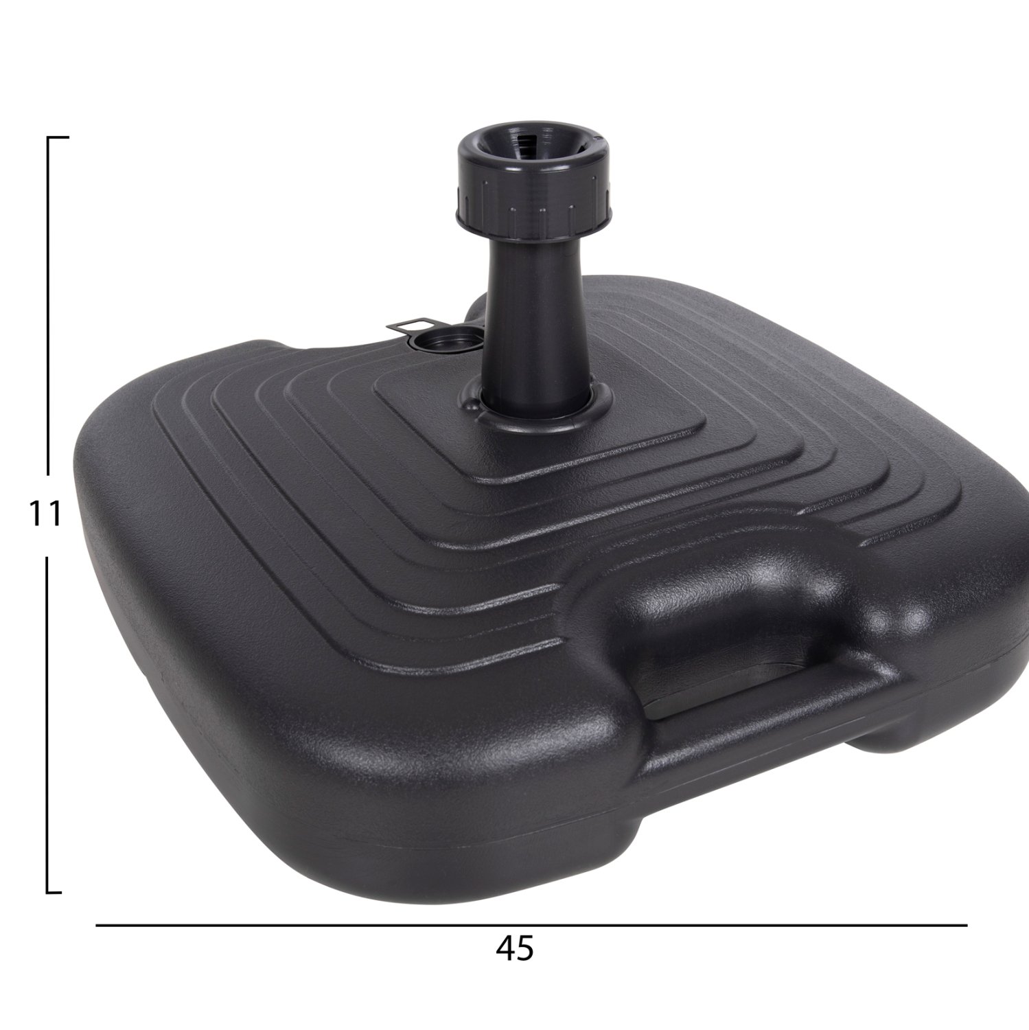 Η SOLBAS είναι η νέα προσθήκη στην γκάμα μας στην κατηγορία των βάσεων για ομπρέλες θαλάσσης. Πρόκειται για μια τετράγωνη πλαστική βάση σε ΑΝΘΡΑΚΙ χρώμα, που έχει όλα τα απαραίτητα χαρακτηριστικά που την κάνουν στιβαρή αλλά και πρακτική! Διαθέτει χερούλι μεταφοράς και φυσικά την ρυθμιζόμενη υποδοχή για κοντάρι ομπρέλας. Το κοντάρι θα πρέπει να είναι διαστάσεων 20/38mm.