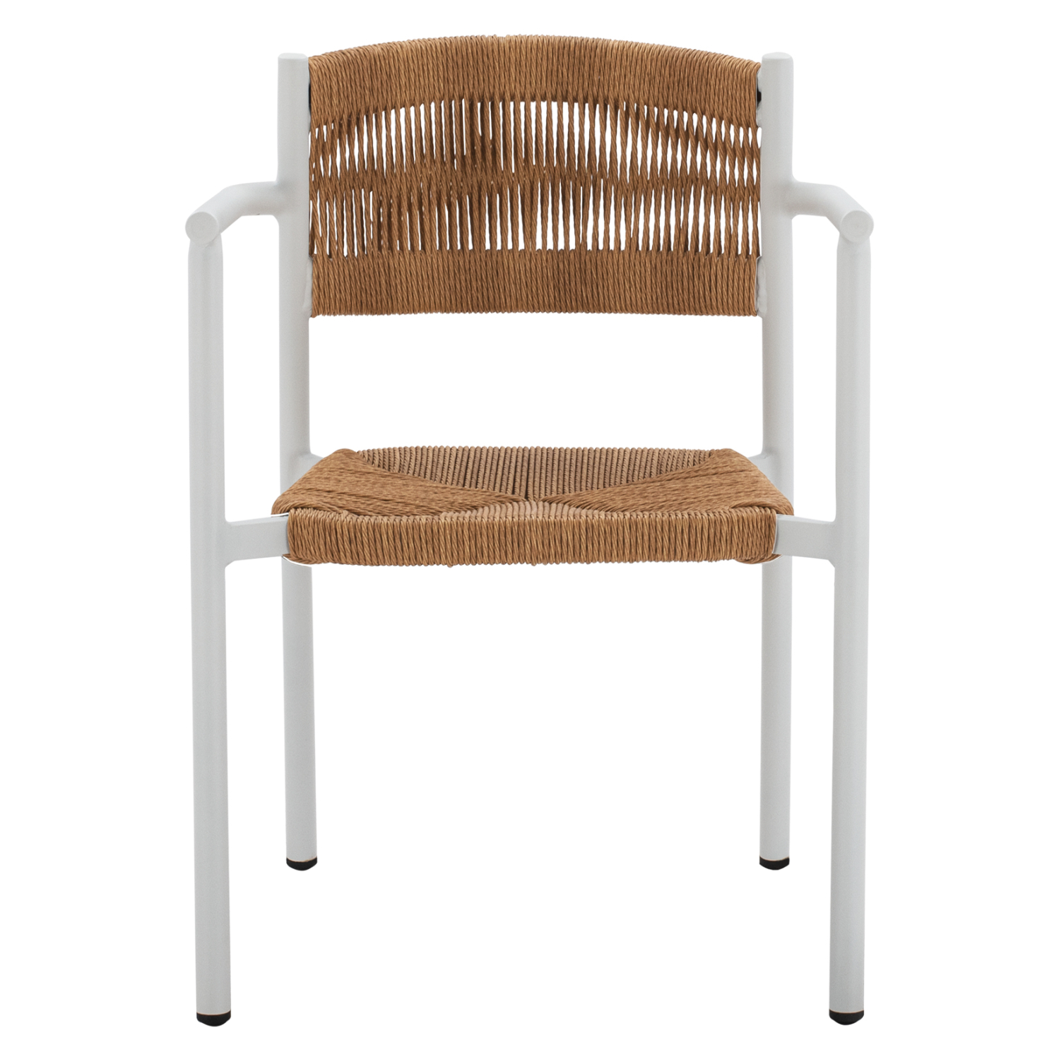 Μοντέρνα πολυθρόνα, κατασκευασμένη από σκελετό αλουμινίου σε λευκή απόχρωση, επενδυμένημε πλεκτό ενισχυμένο PE σχοινί στο κάθισμα και στην πλάτη σε μπεζ απόχρωση.