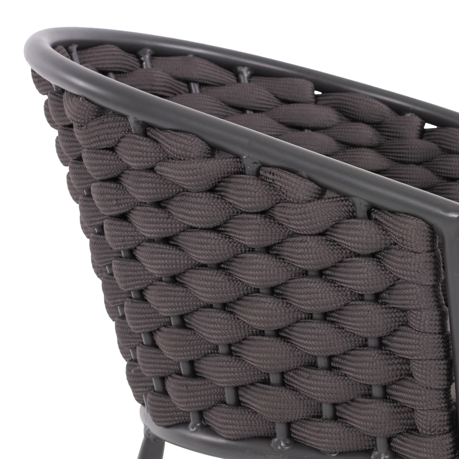 Η πολυθρόνα είναι επενδυμένη με ανθεκτικό συνθετικό σχοινί με αφρώδες γέμισμα.
