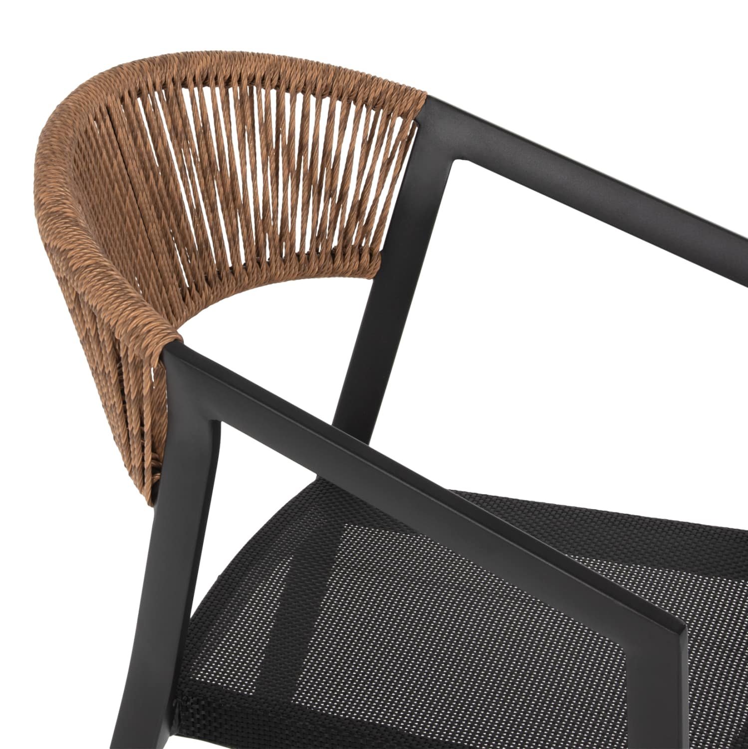 Η πλάτη της πολυθρόνας είναι επενδυμένη με πολυεστερικό RATTAN. Στα περισσότερα έπιπλα για εξωτερικούς χώρους χρησιμοποιείται συνθετικό υλικό από PVC, δηλαδή τεχνητές ίνες υψηλής ποιότητας. Αυτό δίνει στην κατασκευή εξαιρετική αντοχή και ανθεκτικότητα σε ακραίες συνθήκες ζέστης ή κρύου.
